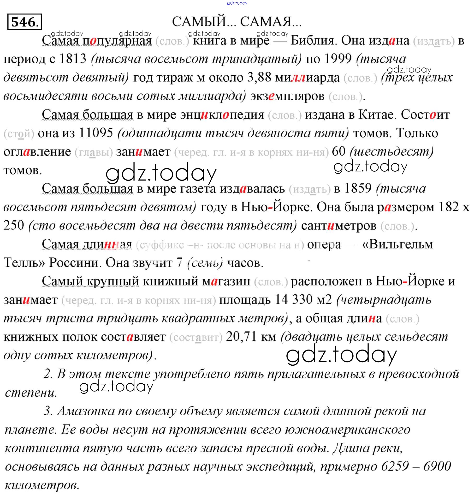 На страницах сайта gdz.today вы найдете учебный и вспомогательный материал, направленный на улучшения знаний школьной программы. ГДЗ - онлайн мир знаний Решение к упражнениям 546 Учебнику по Русскому языку для 6 класса Львова, Львов Мнемозина 2013