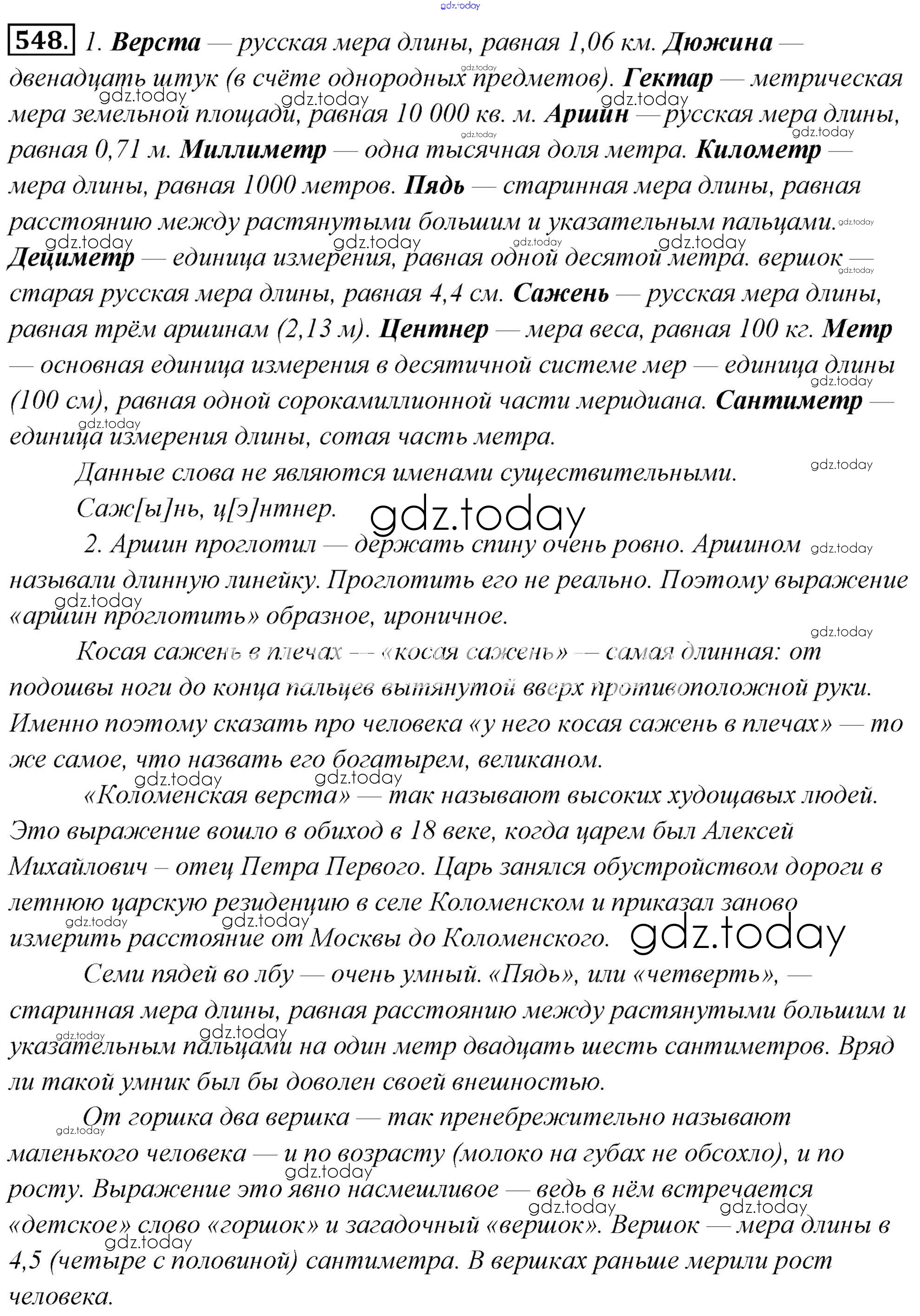 Ответы к Решение к упражнениям 548 Учебнику по Русскому языку для 6 класса Львова, Львов Мнемозина 2013