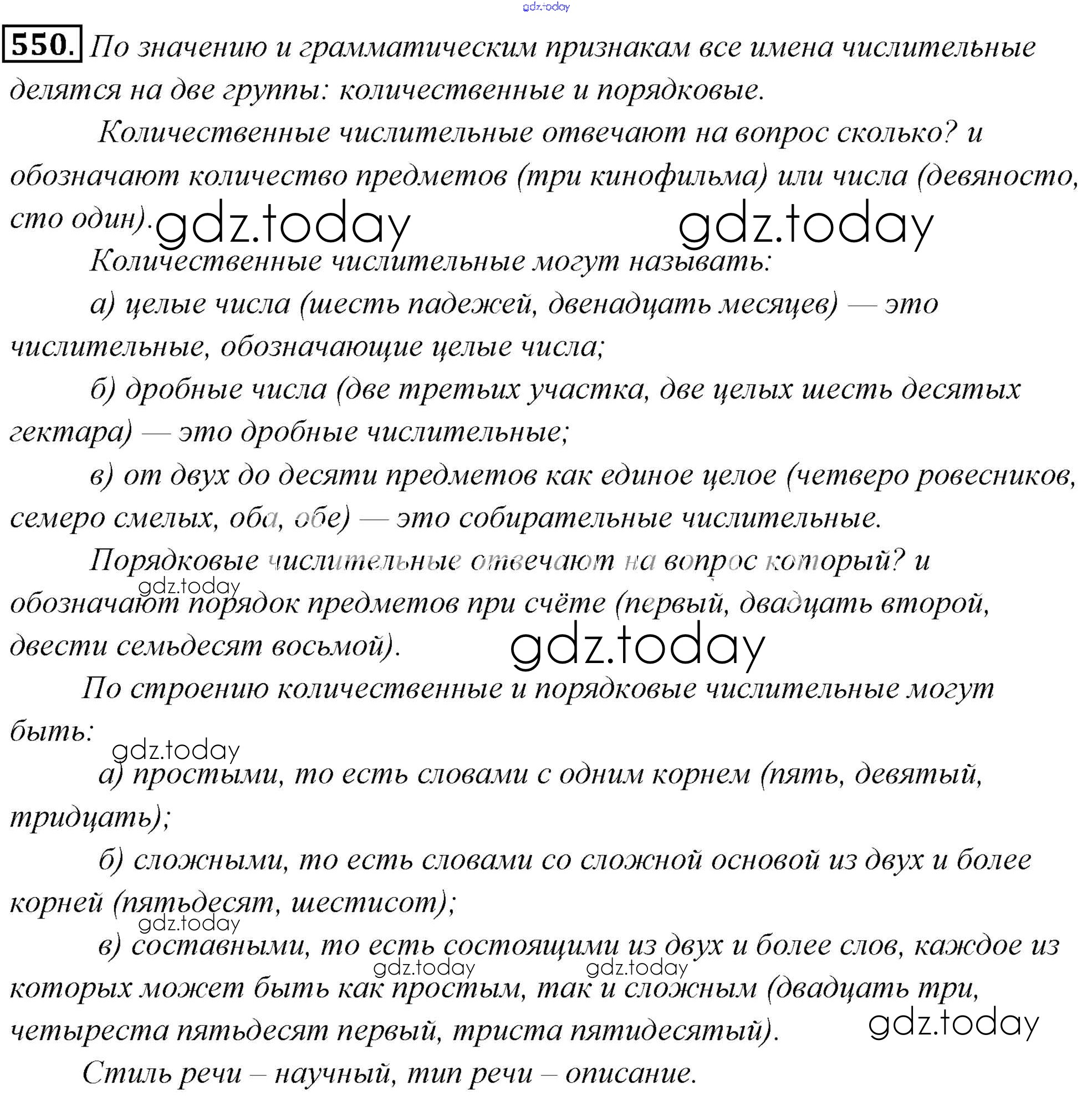 На страницах сайта gdz.today вы найдете учебный и вспомогательный материал, направленный на улучшения знаний школьной программы. ГДЗ - онлайн мир знаний Решение к упражнениям 550 Учебнику по Русскому языку для 6 класса Львова, Львов Мнемозина 2013