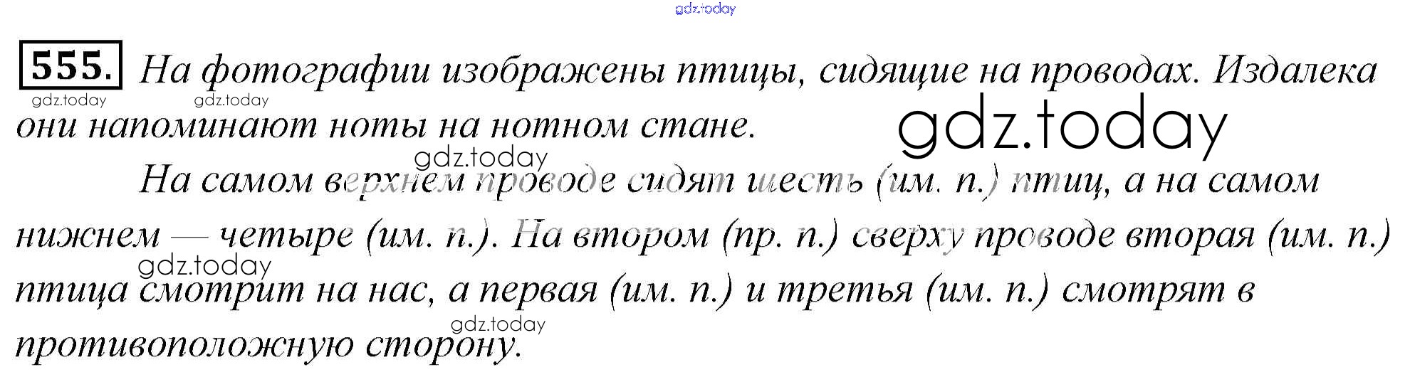 На страницах сайта gdz.today вы найдете учебный и вспомогательный материал, направленный на улучшения знаний школьной программы. ГДЗ - онлайн мир знаний Решение к упражнениям 555 Учебнику по Русскому языку для 6 класса Львова, Львов Мнемозина 2013