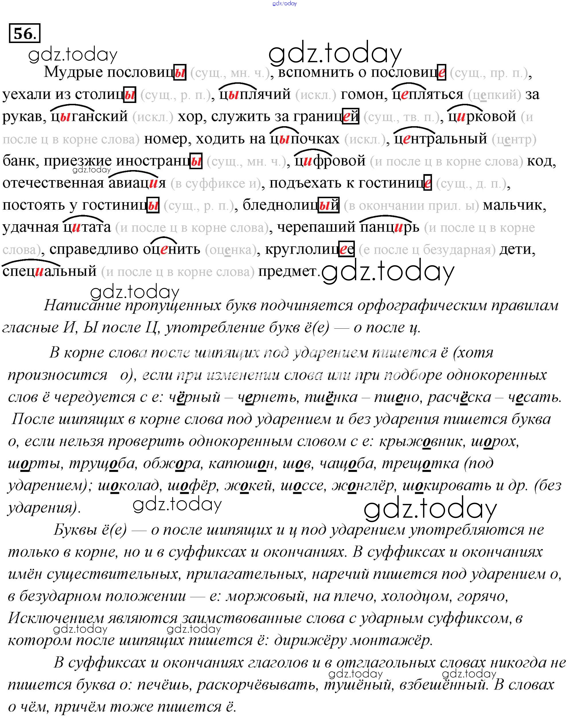 На страницах сайта gdz.today вы найдете учебный и вспомогательный материал, направленный на улучшения знаний школьной программы. ГДЗ - онлайн мир знаний Решение к упражнениям 56 Учебнику по Русскому языку для 6 класса Львова, Львов Мнемозина 2013