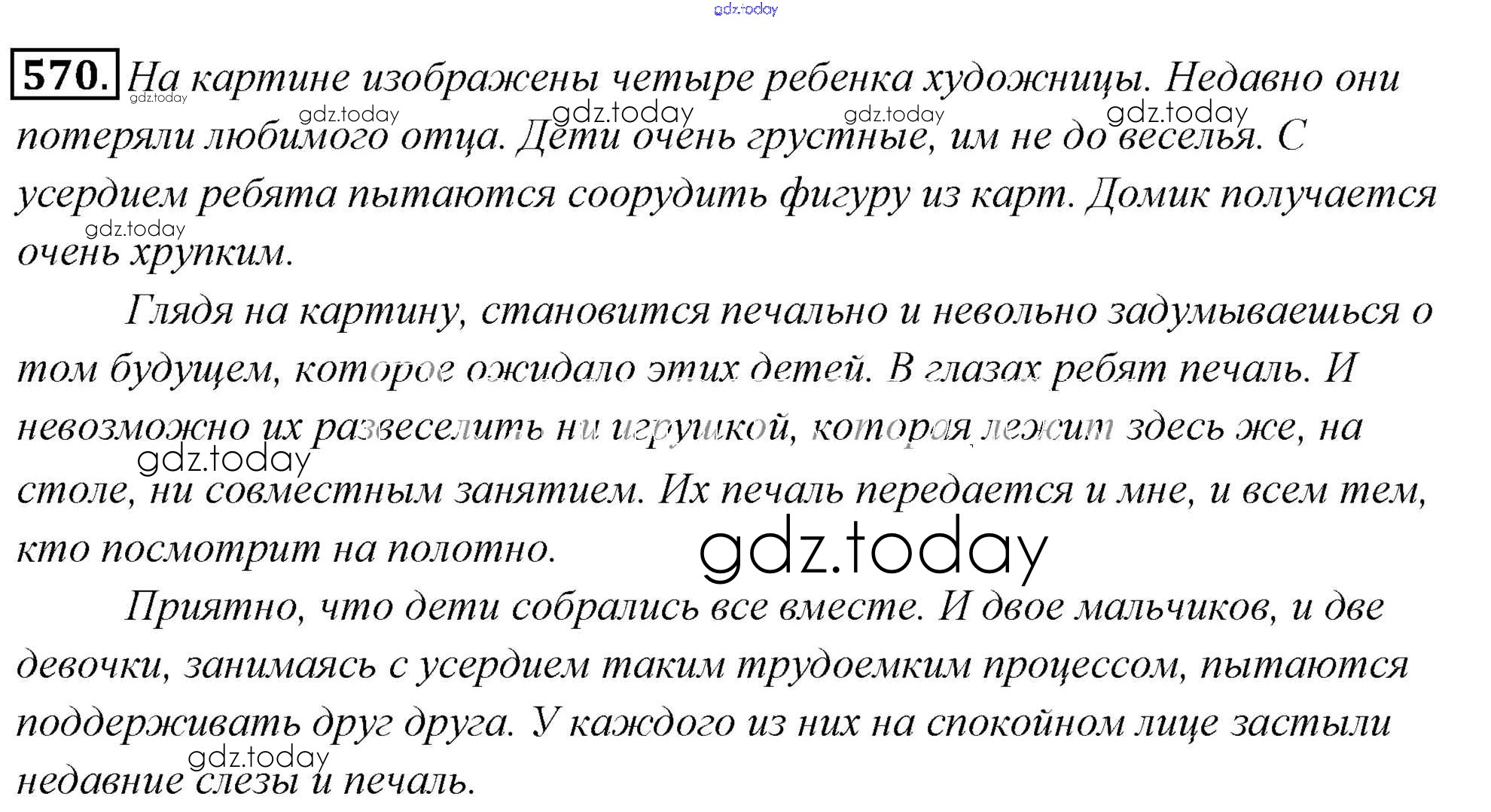На страницах сайта gdz.today вы найдете учебный и вспомогательный материал, направленный на улучшения знаний школьной программы. ГДЗ - онлайн мир знаний Решение к упражнениям 570 Учебнику по Русскому языку для 6 класса Львова, Львов Мнемозина 2013