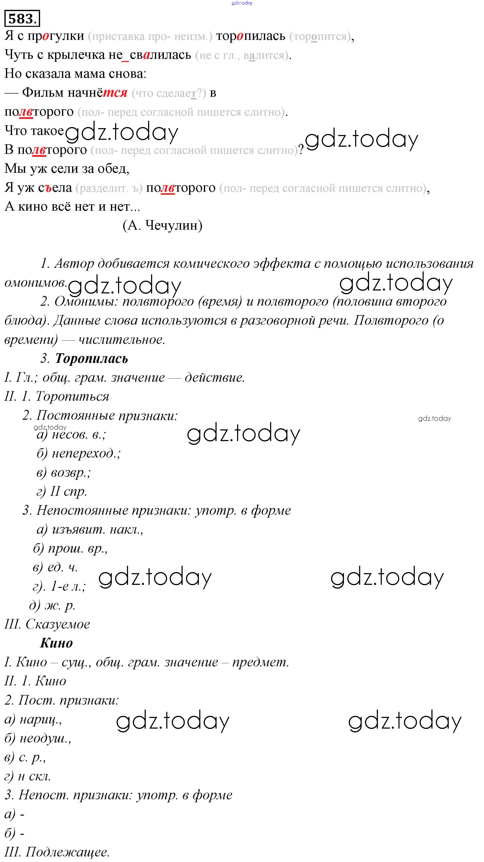 На страницах сайта gdz.today вы найдете учебный и вспомогательный материал, направленный на улучшения знаний школьной программы. ГДЗ - онлайн мир знаний Решение к упражнениям 583 Учебнику по Русскому языку для 6 класса Львова, Львов Мнемозина 2013