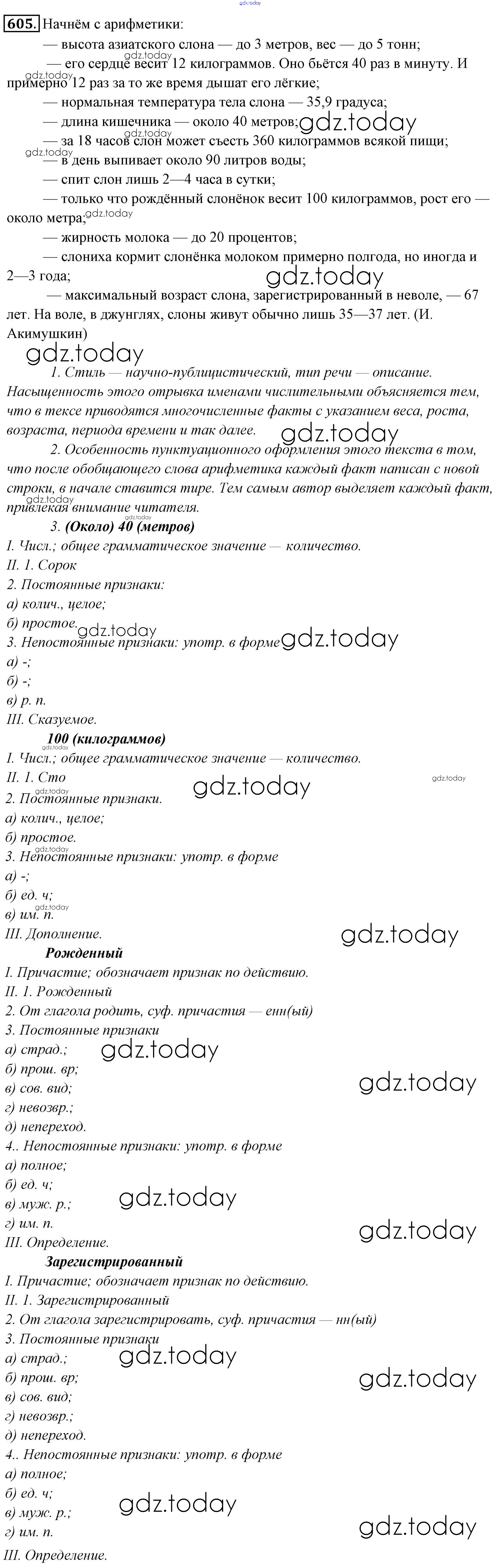 На страницах сайта gdz.today вы найдете учебный и вспомогательный материал, направленный на улучшения знаний школьной программы. ГДЗ - онлайн мир знаний Решение к упражнениям 605 Учебнику по Русскому языку для 6 класса Львова, Львов Мнемозина 2013