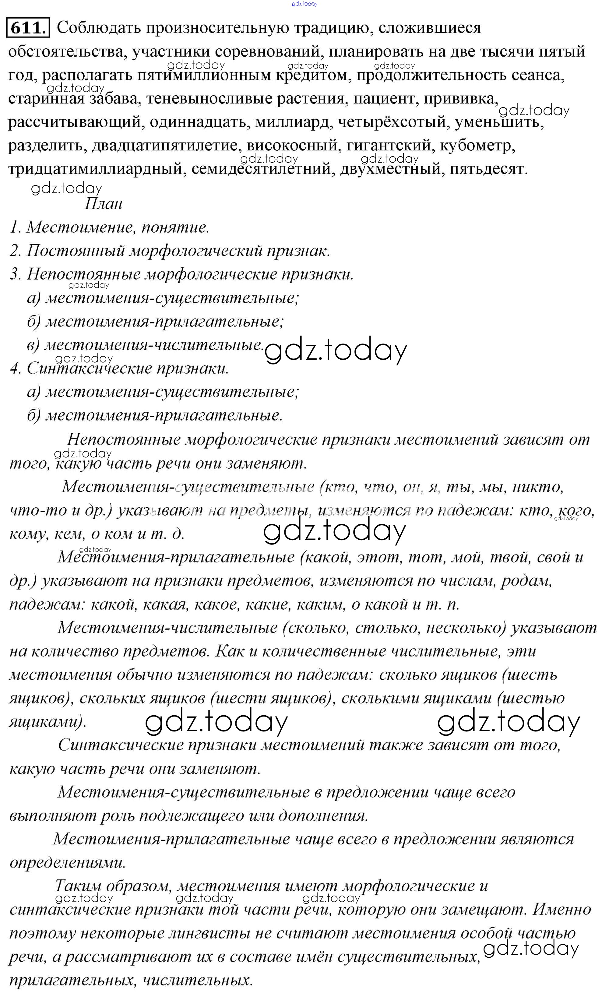 На страницах сайта gdz.today вы найдете учебный и вспомогательный материал, направленный на улучшения знаний школьной программы. ГДЗ - онлайн мир знаний Решение к упражнениям 611 Учебнику по Русскому языку для 6 класса Львова, Львов Мнемозина 2013