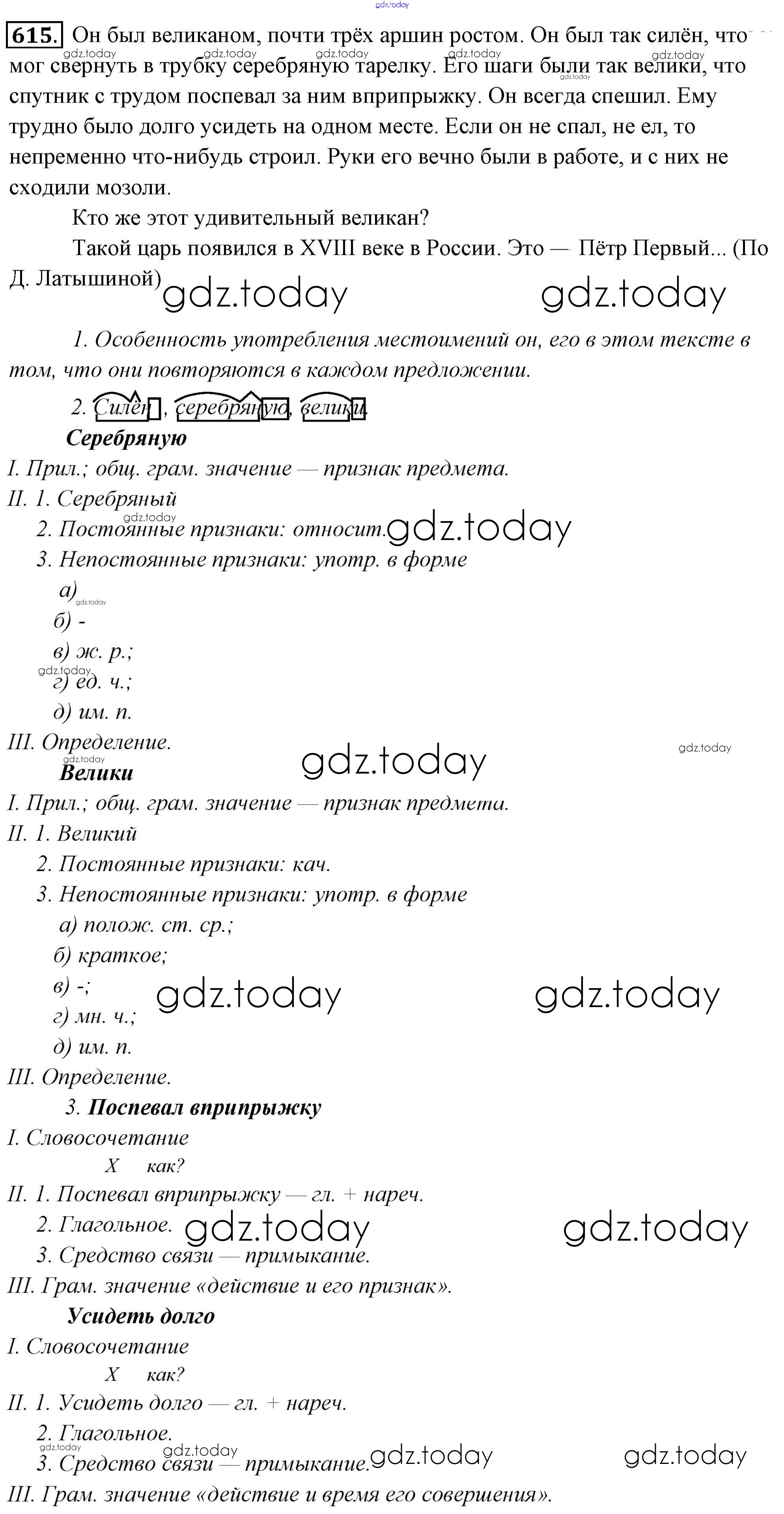 На страницах сайта gdz.today вы найдете учебный и вспомогательный материал, направленный на улучшения знаний школьной программы. ГДЗ - онлайн мир знаний Решение к упражнениям 615 Учебнику по Русскому языку для 6 класса Львова, Львов Мнемозина 2013