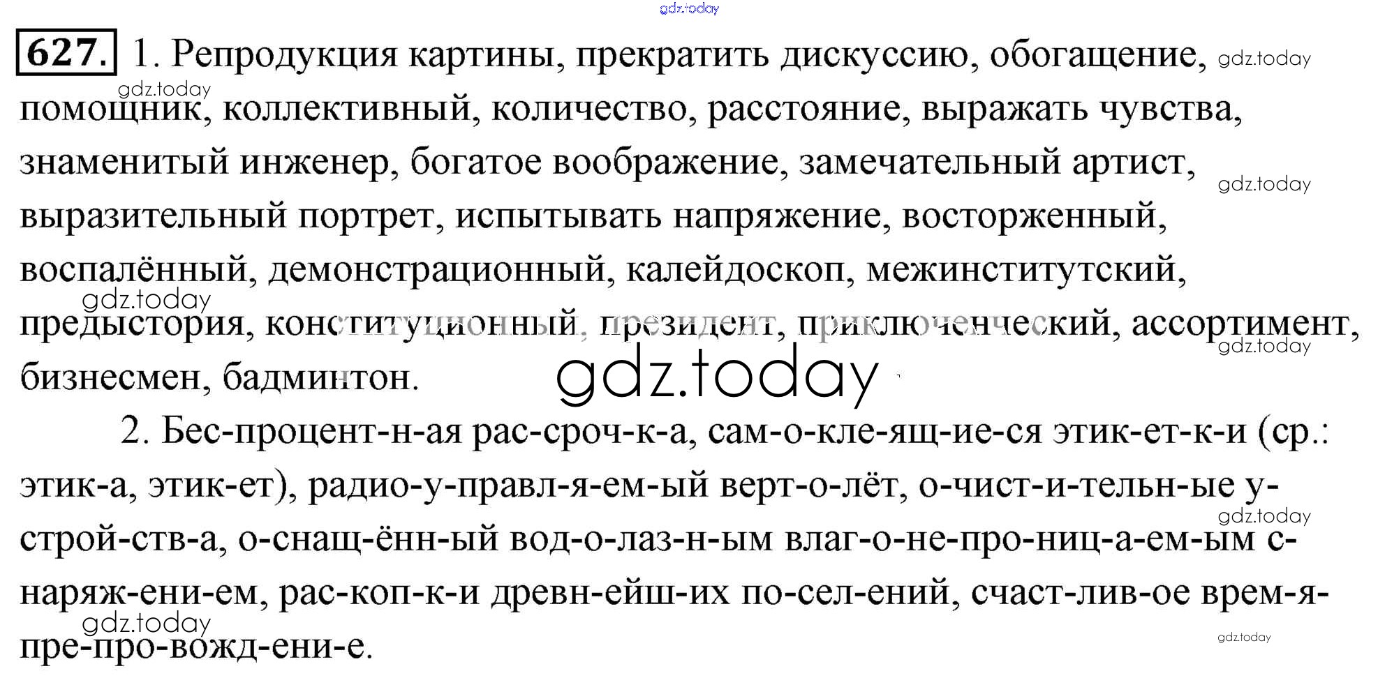 На страницах сайта gdz.today вы найдете учебный и вспомогательный материал, направленный на улучшения знаний школьной программы. ГДЗ - онлайн мир знаний Решение к упражнениям 627 Учебнику по Русскому языку для 6 класса Львова, Львов Мнемозина 2013