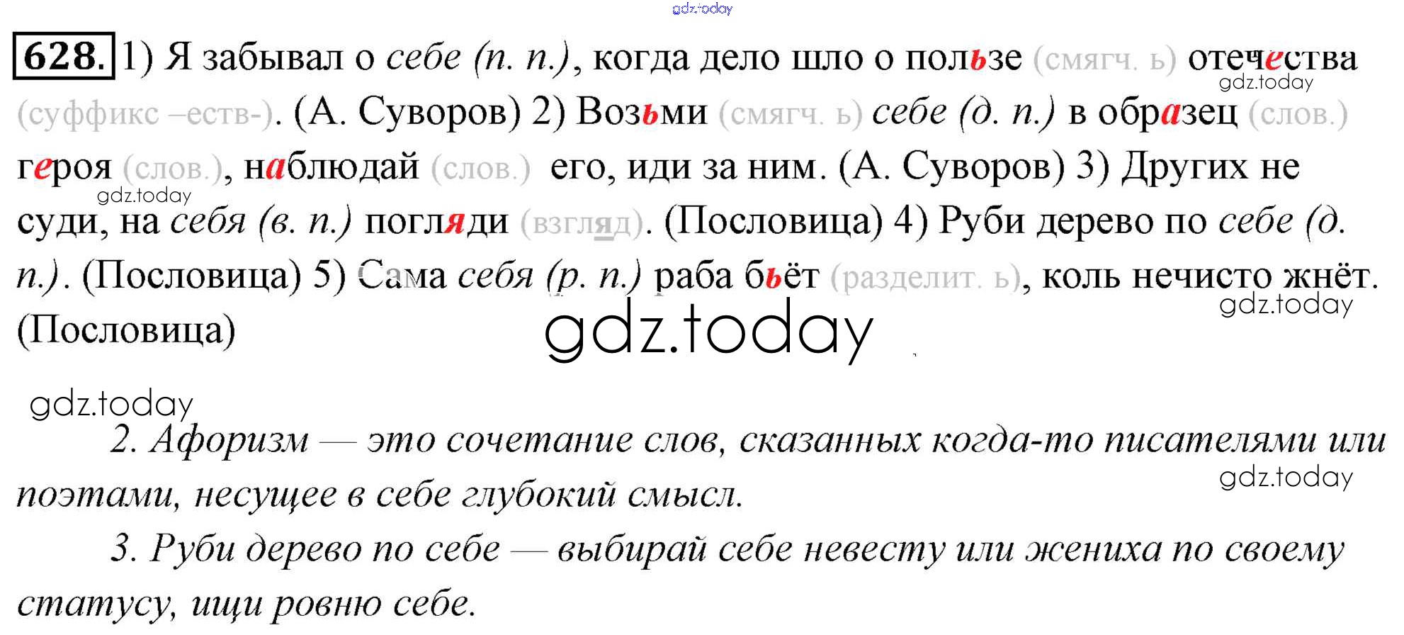 На страницах сайта gdz.today вы найдете учебный и вспомогательный материал, направленный на улучшения знаний школьной программы. ГДЗ - онлайн мир знаний Решение к упражнениям 628 Учебнику по Русскому языку для 6 класса Львова, Львов Мнемозина 2013