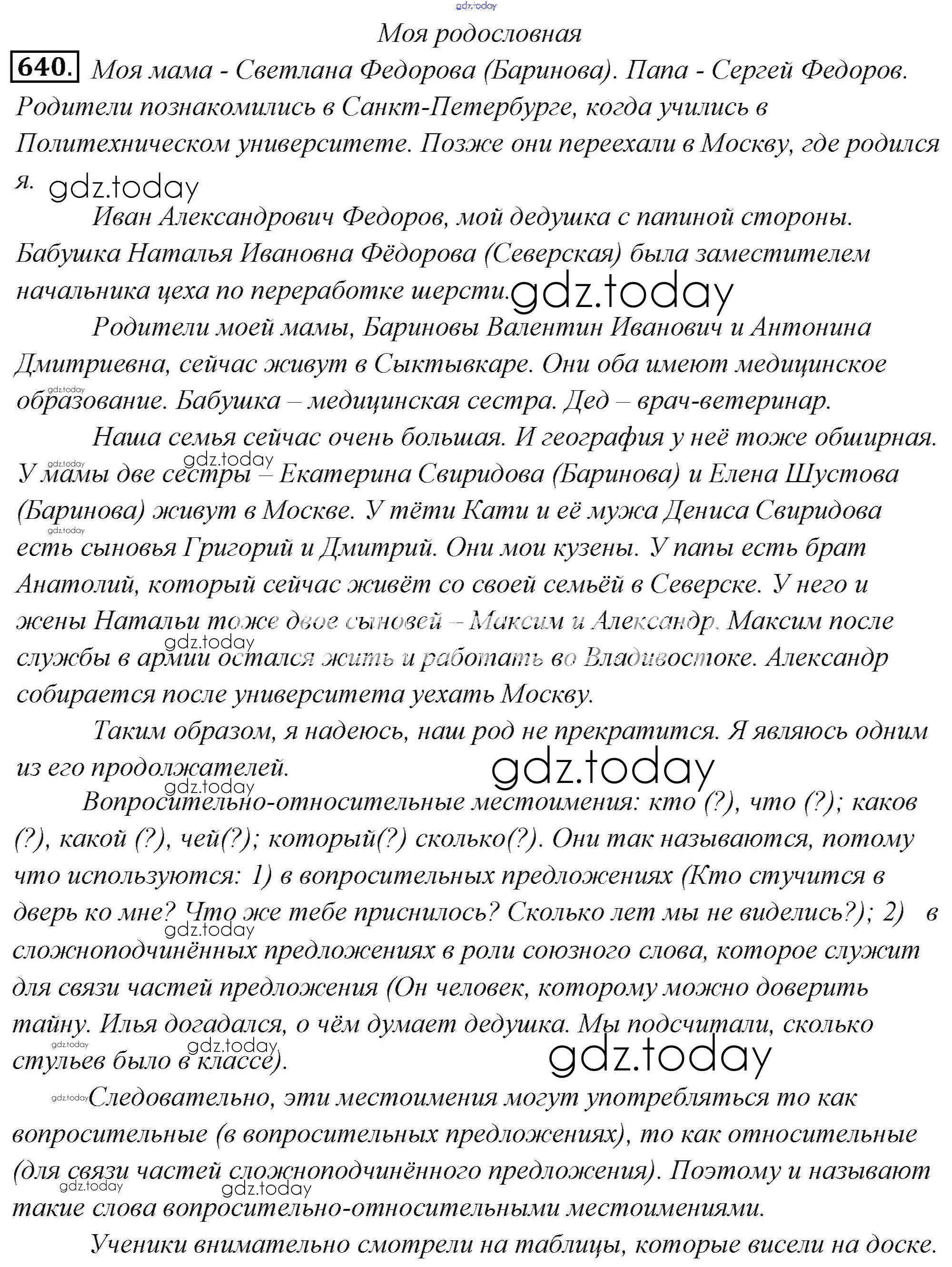 На страницах сайта gdz.today вы найдете учебный и вспомогательный материал, направленный на улучшения знаний школьной программы. ГДЗ - онлайн мир знаний Решение к упражнениям 640 Учебнику по Русскому языку для 6 класса Львова, Львов Мнемозина 2013