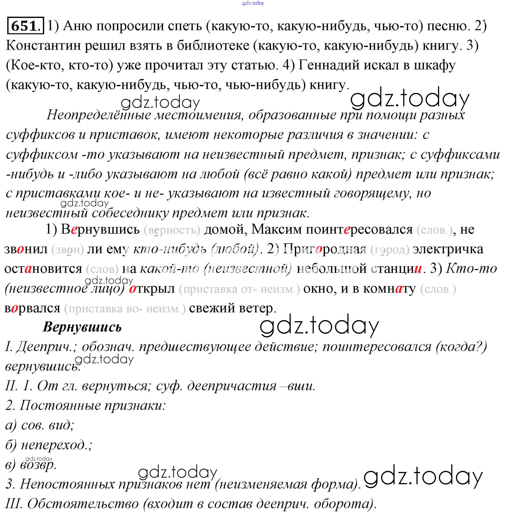 Ответы к Решение к упражнениям 651 Учебнику по Русскому языку для 6 класса Львова, Львов Мнемозина 2013