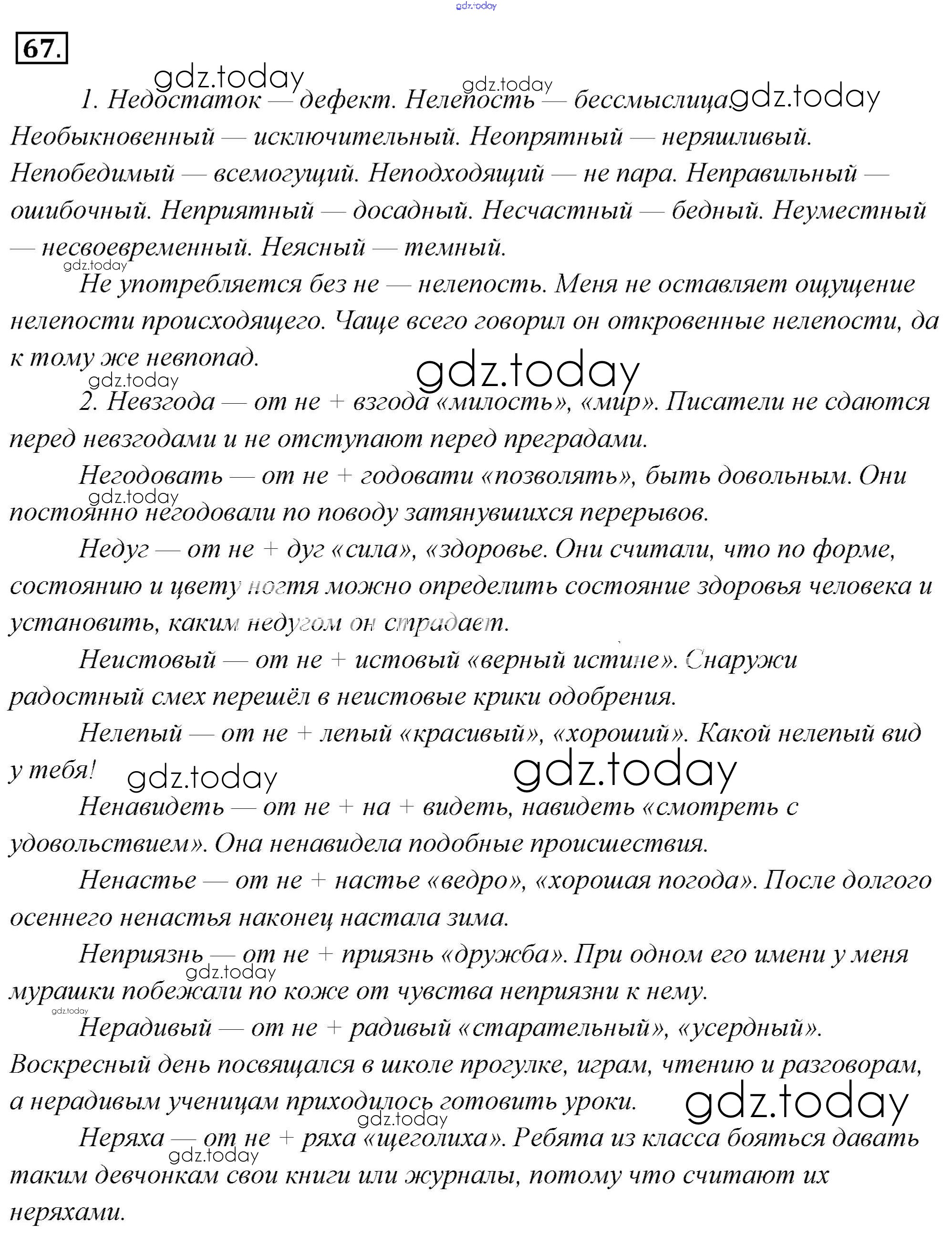На страницах сайта gdz.today вы найдете учебный и вспомогательный материал, направленный на улучшения знаний школьной программы. ГДЗ - онлайн мир знаний Решение к упражнениям 67 Учебнику по Русскому языку для 6 класса Львова, Львов Мнемозина 2013
