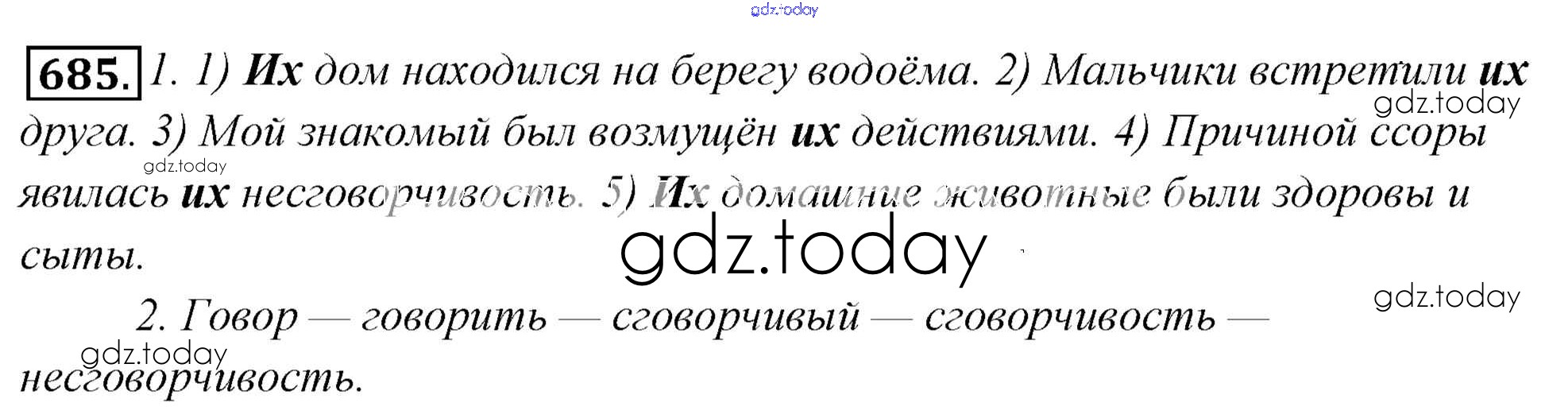 На страницах сайта gdz.today вы найдете учебный и вспомогательный материал, направленный на улучшения знаний школьной программы. ГДЗ - онлайн мир знаний Решение к упражнениям 685 Учебнику по Русскому языку для 6 класса Львова, Львов Мнемозина 2013