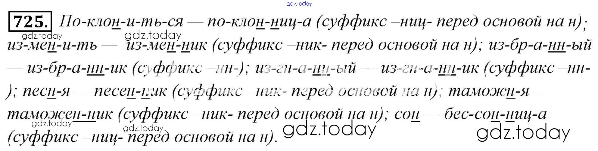 Ответы к Решение к упражнениям 725 Учебнику по Русскому языку для 6 класса Львова, Львов Мнемозина 2013