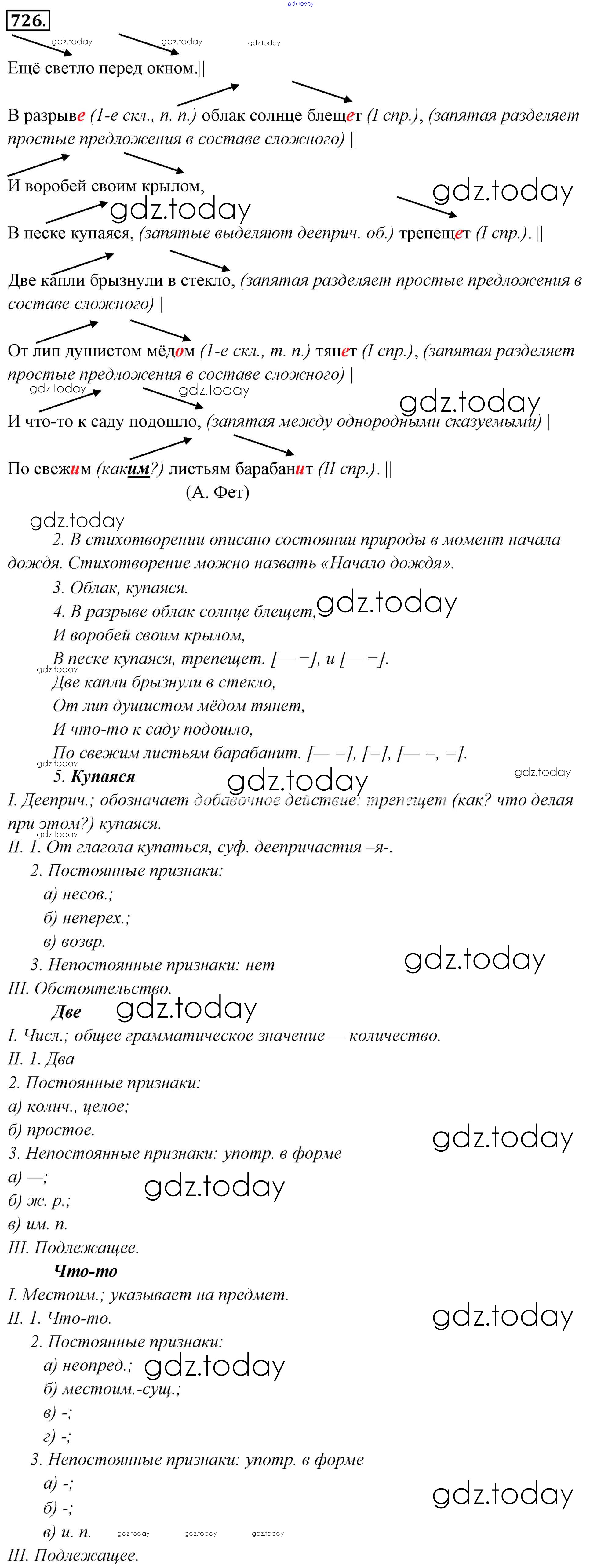Ответы к Решение к упражнениям 726 Учебнику по Русскому языку для 6 класса Львова, Львов Мнемозина 2013