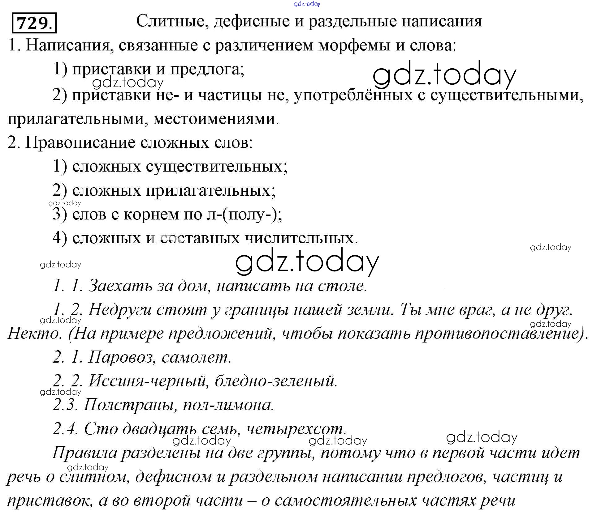 Ответы к Решение к упражнениям 729 Учебнику по Русскому языку для 6 класса Львова, Львов Мнемозина 2013
