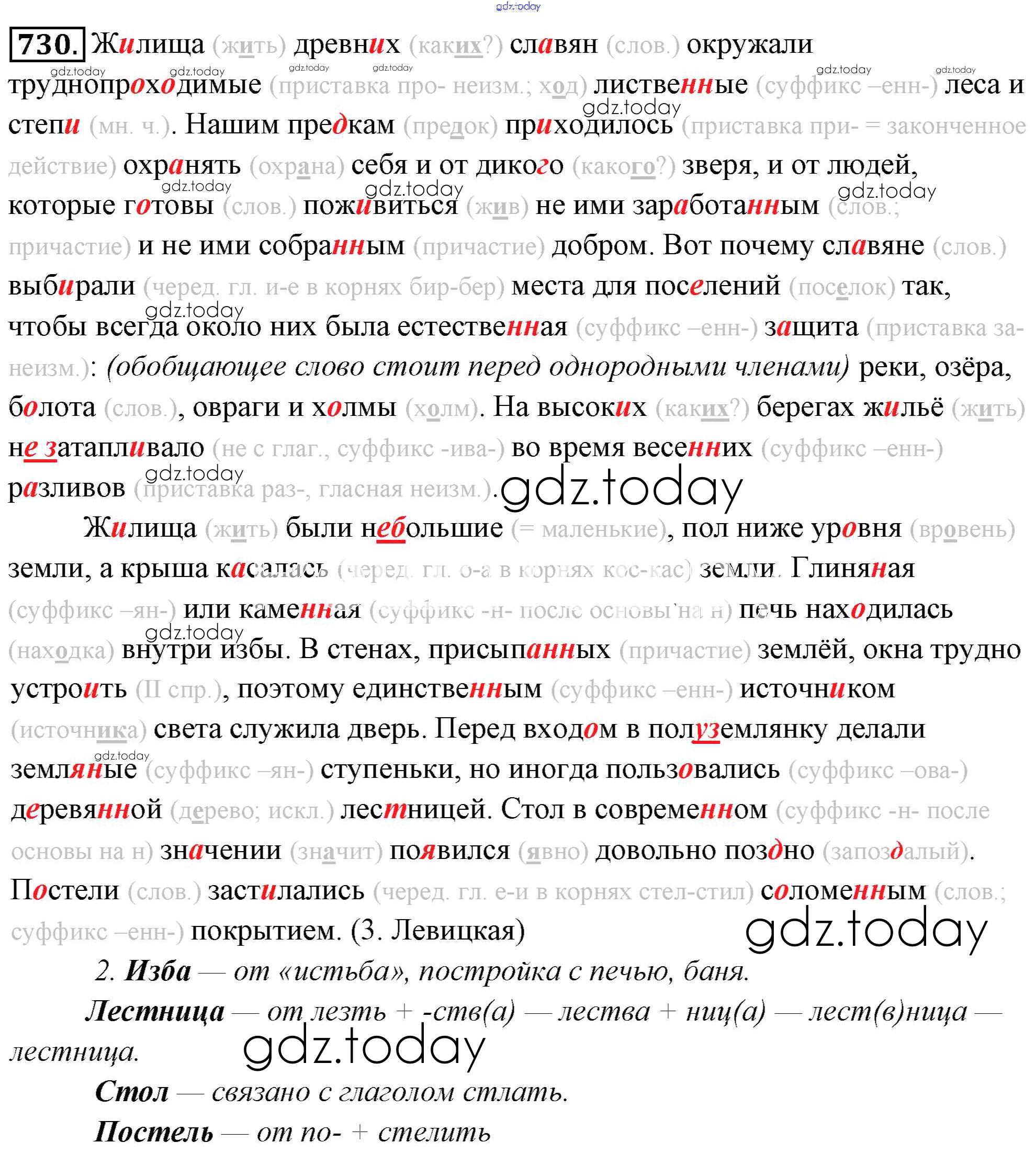 Ответы к Решение к упражнениям 730 Учебнику по Русскому языку для 6 класса Львова, Львов Мнемозина 2013