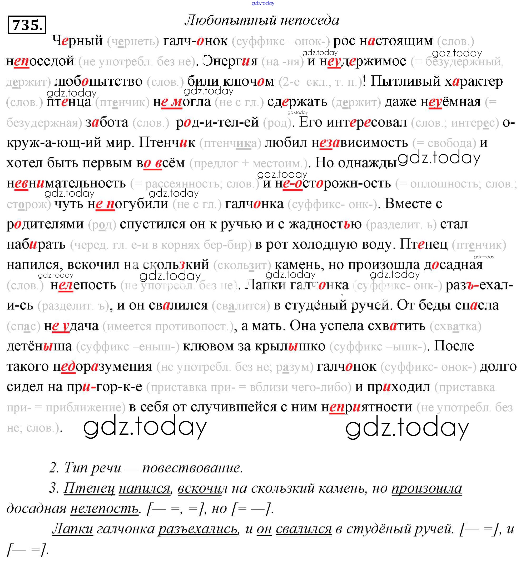На страницах сайта gdz.today вы найдете учебный и вспомогательный материал, направленный на улучшения знаний школьной программы. ГДЗ - онлайн мир знаний Решение к упражнениям 735 Учебнику по Русскому языку для 6 класса Львова, Львов Мнемозина 2013