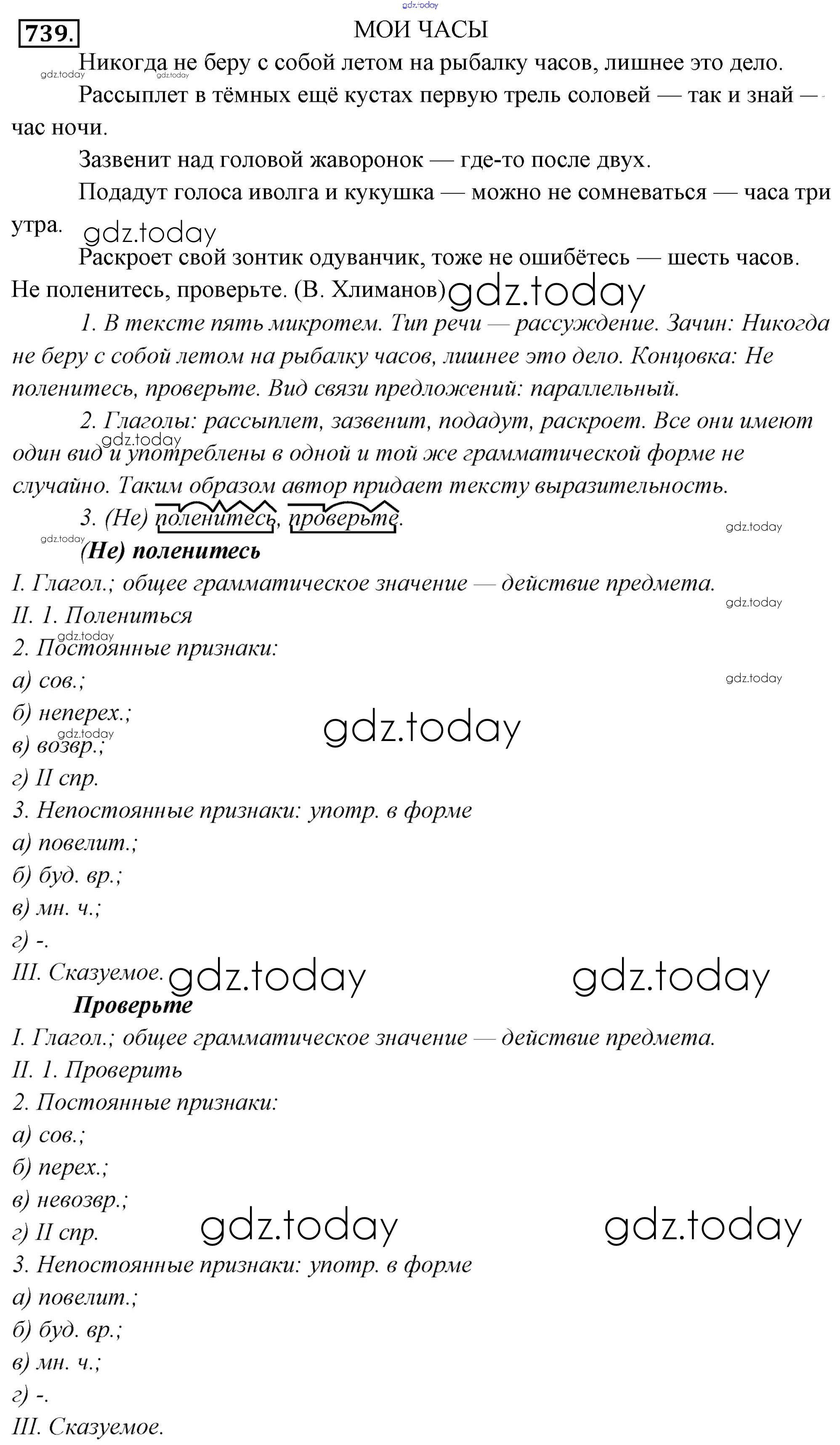 Ответы к Решение к упражнениям 739 Учебнику по Русскому языку для 6 класса Львова, Львов Мнемозина 2013