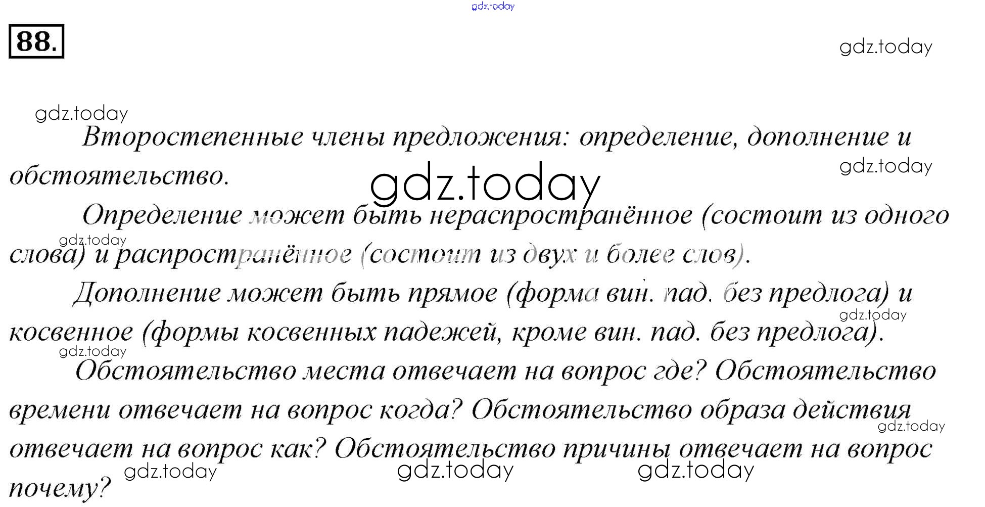 На страницах сайта gdz.today вы найдете учебный и вспомогательный материал, направленный на улучшения знаний школьной программы. ГДЗ - онлайн мир знаний Решение к упражнениям 88 Учебнику по Русскому языку для 6 класса Львова, Львов Мнемозина 2013