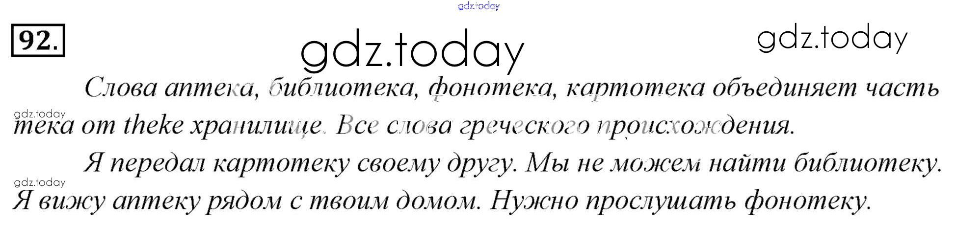 На страницах сайта gdz.today вы найдете учебный и вспомогательный материал, направленный на улучшения знаний школьной программы. ГДЗ - онлайн мир знаний Решение к упражнениям 92 Учебнику по Русскому языку для 6 класса Львова, Львов Мнемозина 2013