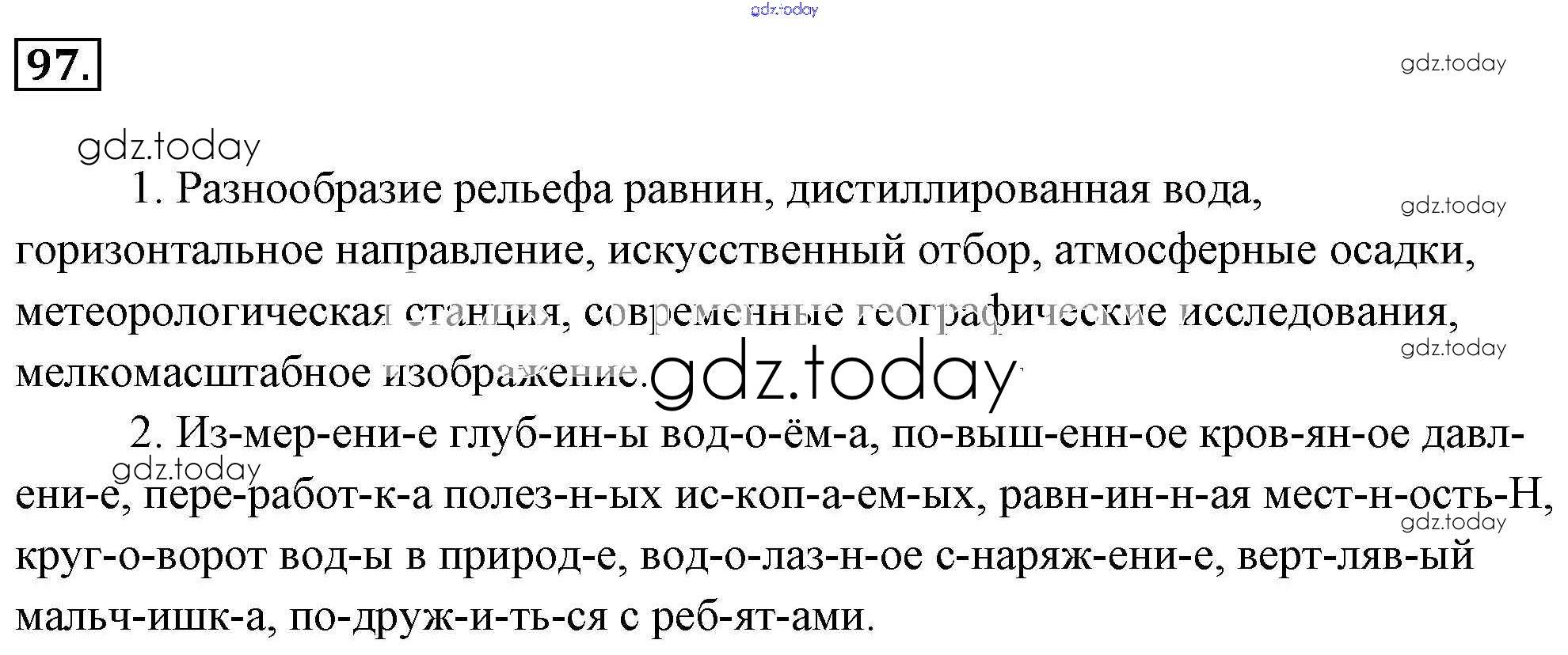 На страницах сайта gdz.today вы найдете учебный и вспомогательный материал, направленный на улучшения знаний школьной программы. ГДЗ - онлайн мир знаний Решение к упражнениям 97 Учебнику по Русскому языку для 6 класса Львова, Львов Мнемозина 2013