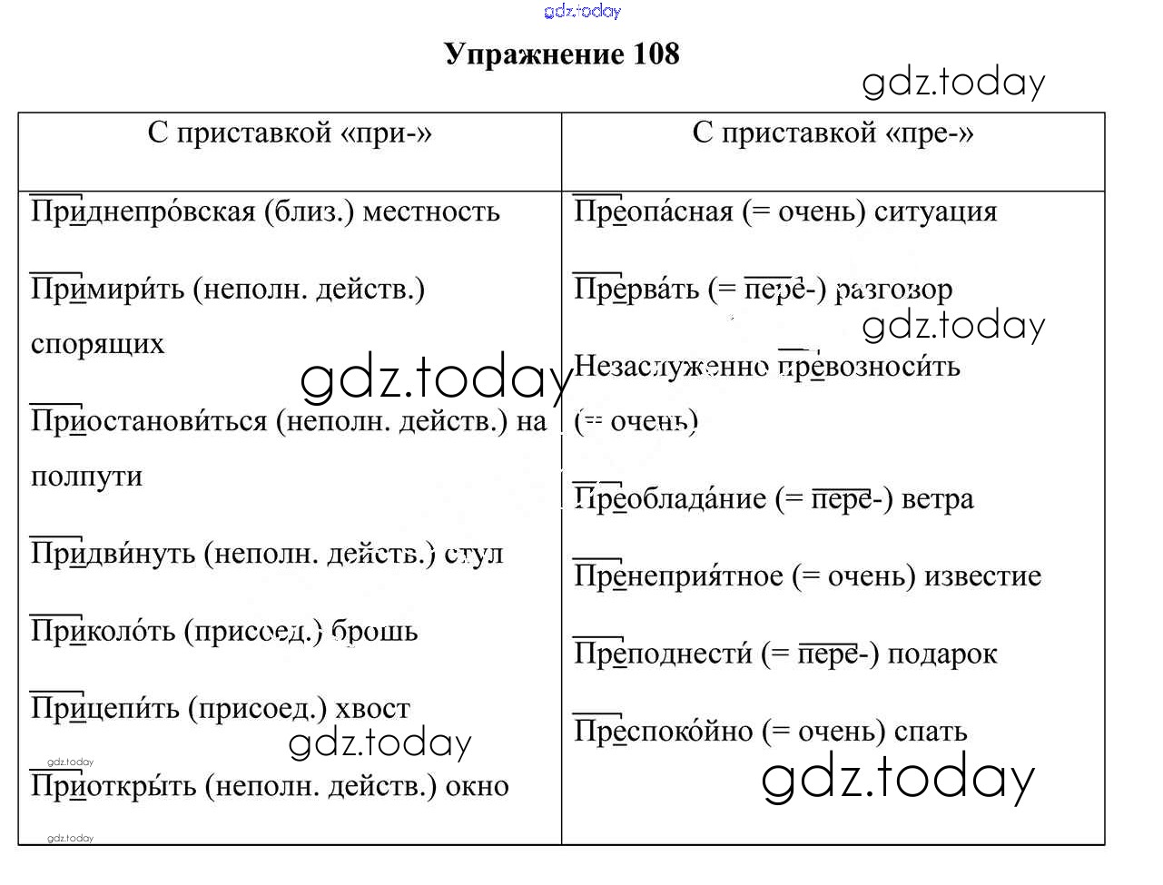 На страницах сайта gdz.today вы найдете учебный и вспомогательный материал, направленный на улучшения знаний школьной программы. ГДЗ - онлайн мир знаний Решение к упражнениям 108 Учебнику по Русскому языку для 6 класса Мурина, Литвинко Национальный институт образования 2020