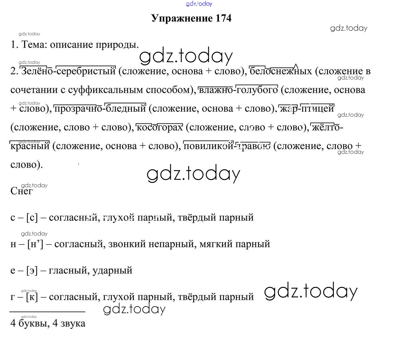 На страницах сайта gdz.today вы найдете учебный и вспомогательный материал, направленный на улучшения знаний школьной программы. ГДЗ - онлайн мир знаний Решение к упражнениям 174 Учебнику по Русскому языку для 6 класса Мурина, Литвинко Национальный институт образования 2020
