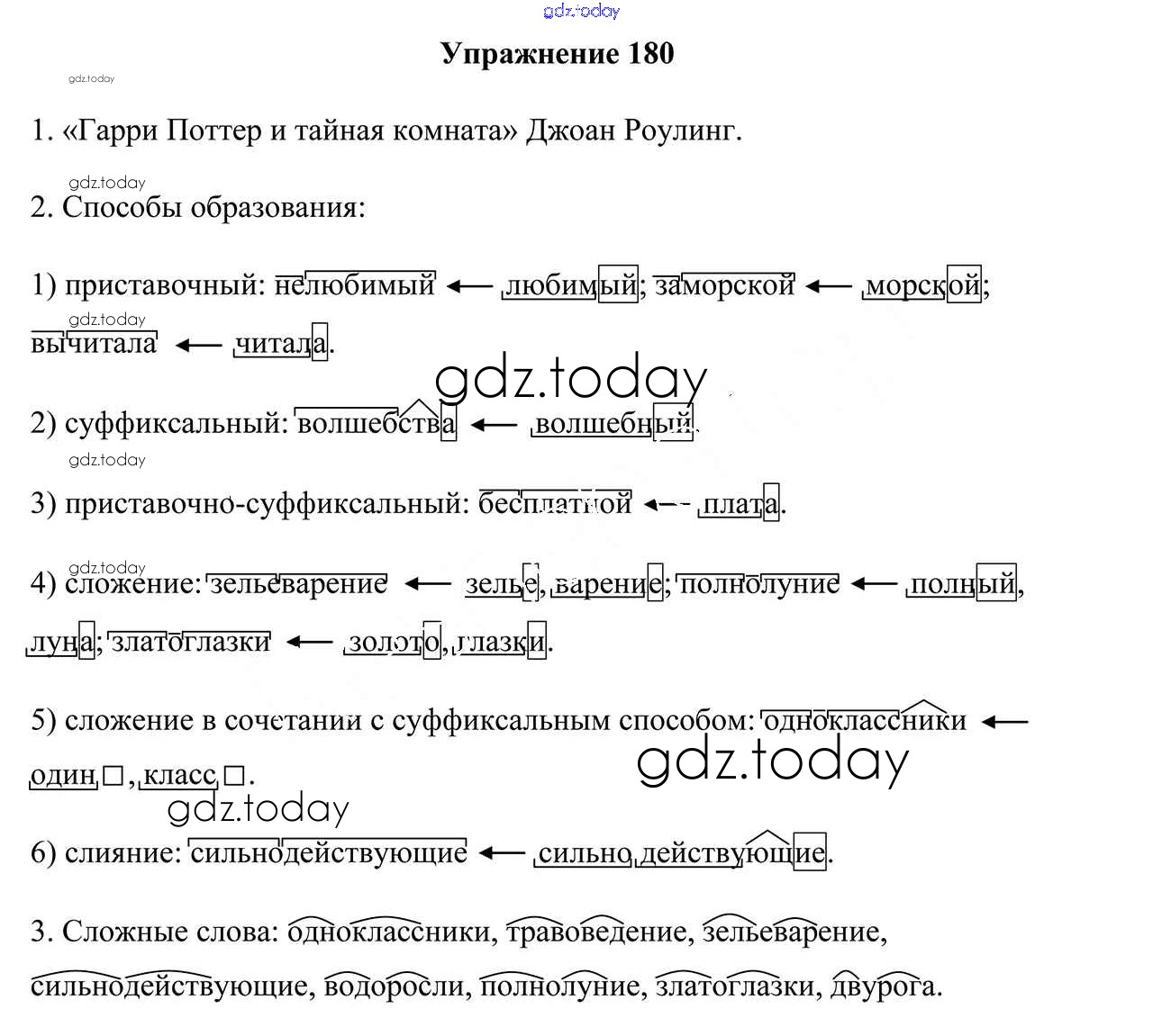 На страницах сайта gdz.today вы найдете учебный и вспомогательный материал, направленный на улучшения знаний школьной программы. ГДЗ - онлайн мир знаний Решение к упражнениям 180 Учебнику по Русскому языку для 6 класса Мурина, Литвинко Национальный институт образования 2020