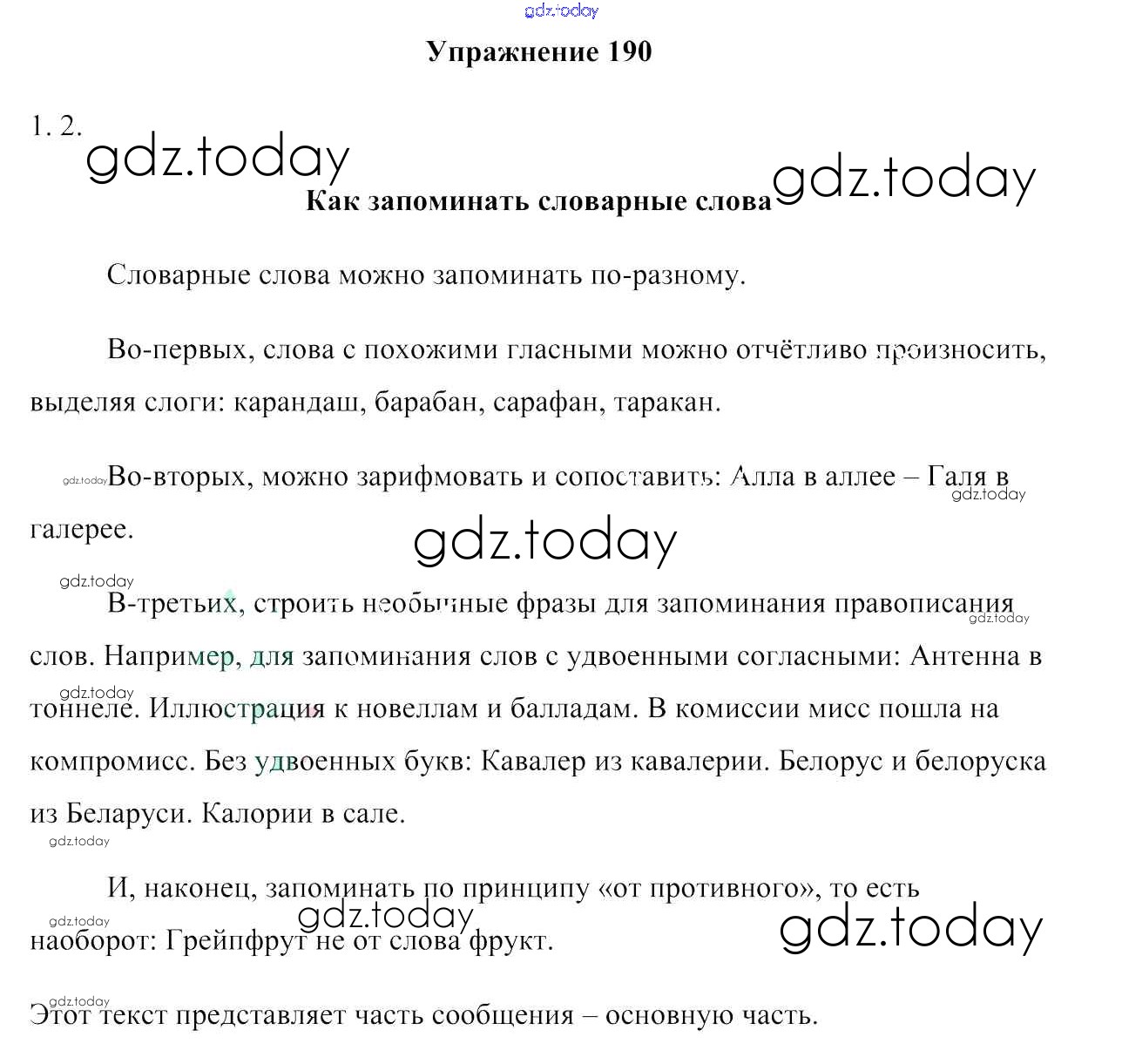 На страницах сайта gdz.today вы найдете учебный и вспомогательный материал, направленный на улучшения знаний школьной программы. ГДЗ - онлайн мир знаний Решение к упражнениям 190 Учебнику по Русскому языку для 6 класса Мурина, Литвинко Национальный институт образования 2020