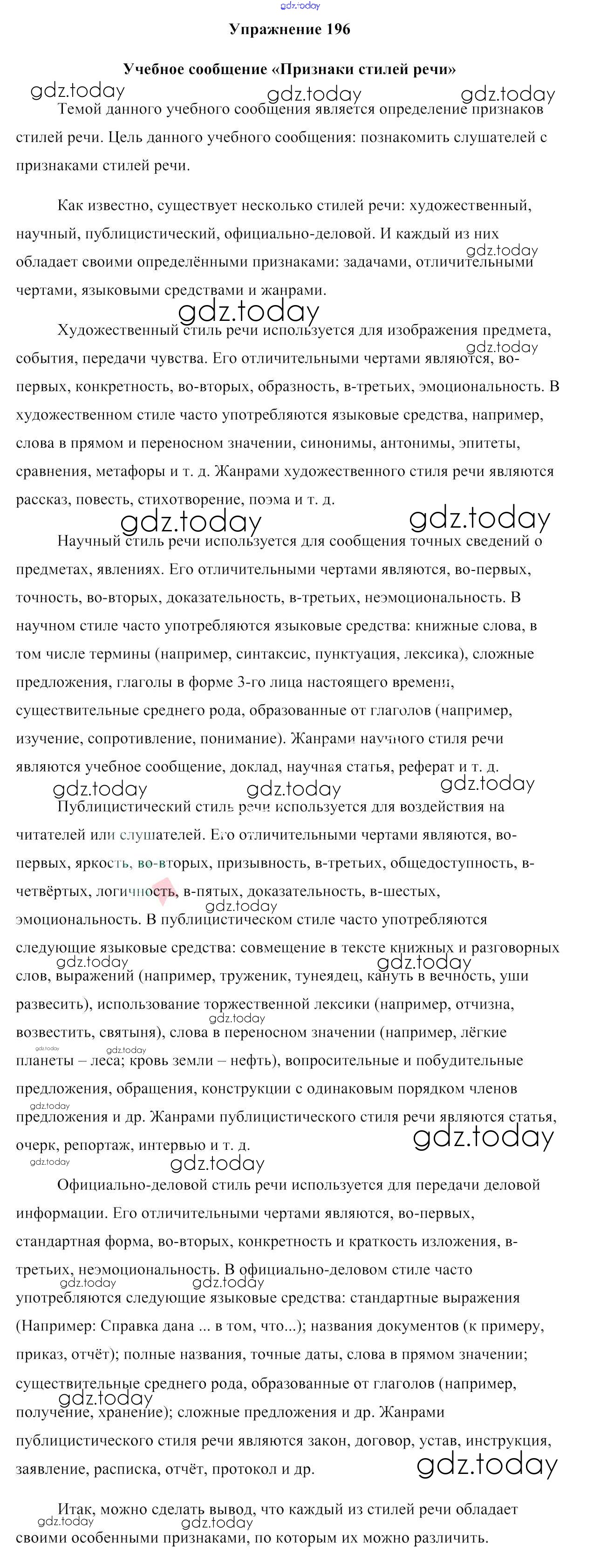 Ответы к Решение к упражнениям 196 Учебнику по Русскому языку для 6 класса Мурина, Литвинко Национальный институт образования 2020