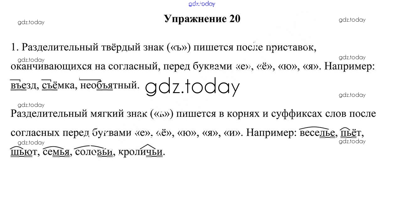 На страницах сайта gdz.today вы найдете учебный и вспомогательный материал, направленный на улучшения знаний школьной программы. ГДЗ - онлайн мир знаний Решение к упражнениям 20 Учебнику по Русскому языку для 6 класса Мурина, Литвинко Национальный институт образования 2020