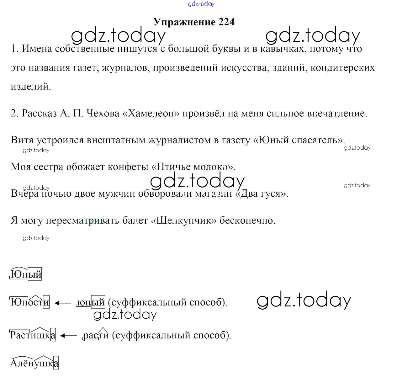 На страницах сайта gdz.today вы найдете учебный и вспомогательный материал, направленный на улучшения знаний школьной программы. ГДЗ - онлайн мир знаний Решение к упражнениям 224 Учебнику по Русскому языку для 6 класса Мурина, Литвинко Национальный институт образования 2020
