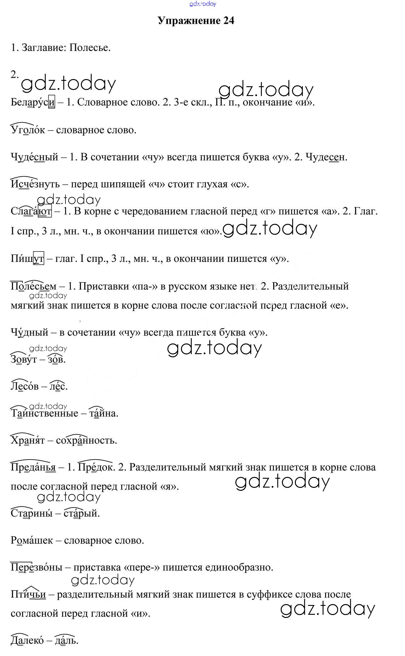 На страницах сайта gdz.today вы найдете учебный и вспомогательный материал, направленный на улучшения знаний школьной программы. ГДЗ - онлайн мир знаний Решение к упражнениям 24 Учебнику по Русскому языку для 6 класса Мурина, Литвинко Национальный институт образования 2020