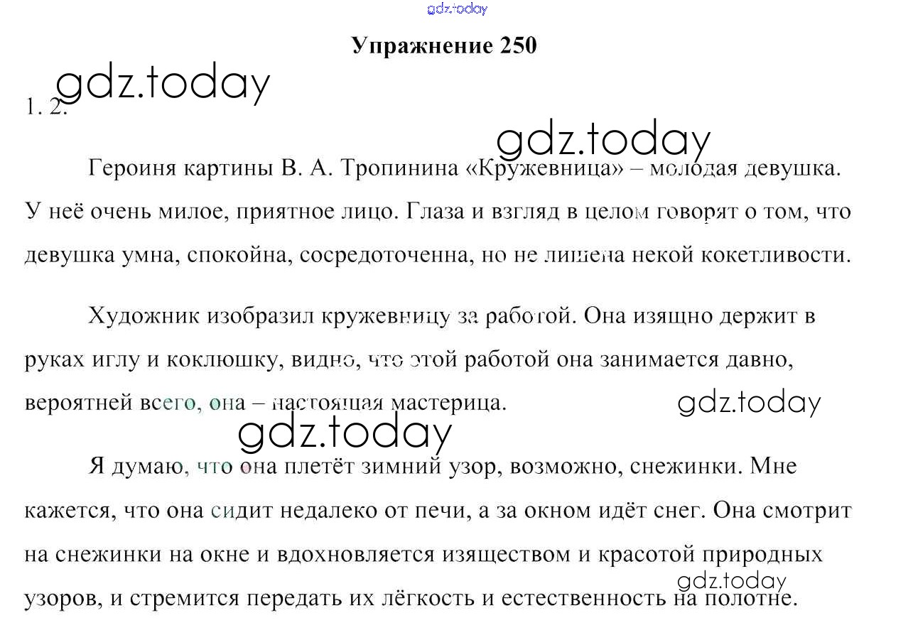 На страницах сайта gdz.today вы найдете учебный и вспомогательный материал, направленный на улучшения знаний школьной программы. ГДЗ - онлайн мир знаний Решение к упражнениям 250 Учебнику по Русскому языку для 6 класса Мурина, Литвинко Национальный институт образования 2020