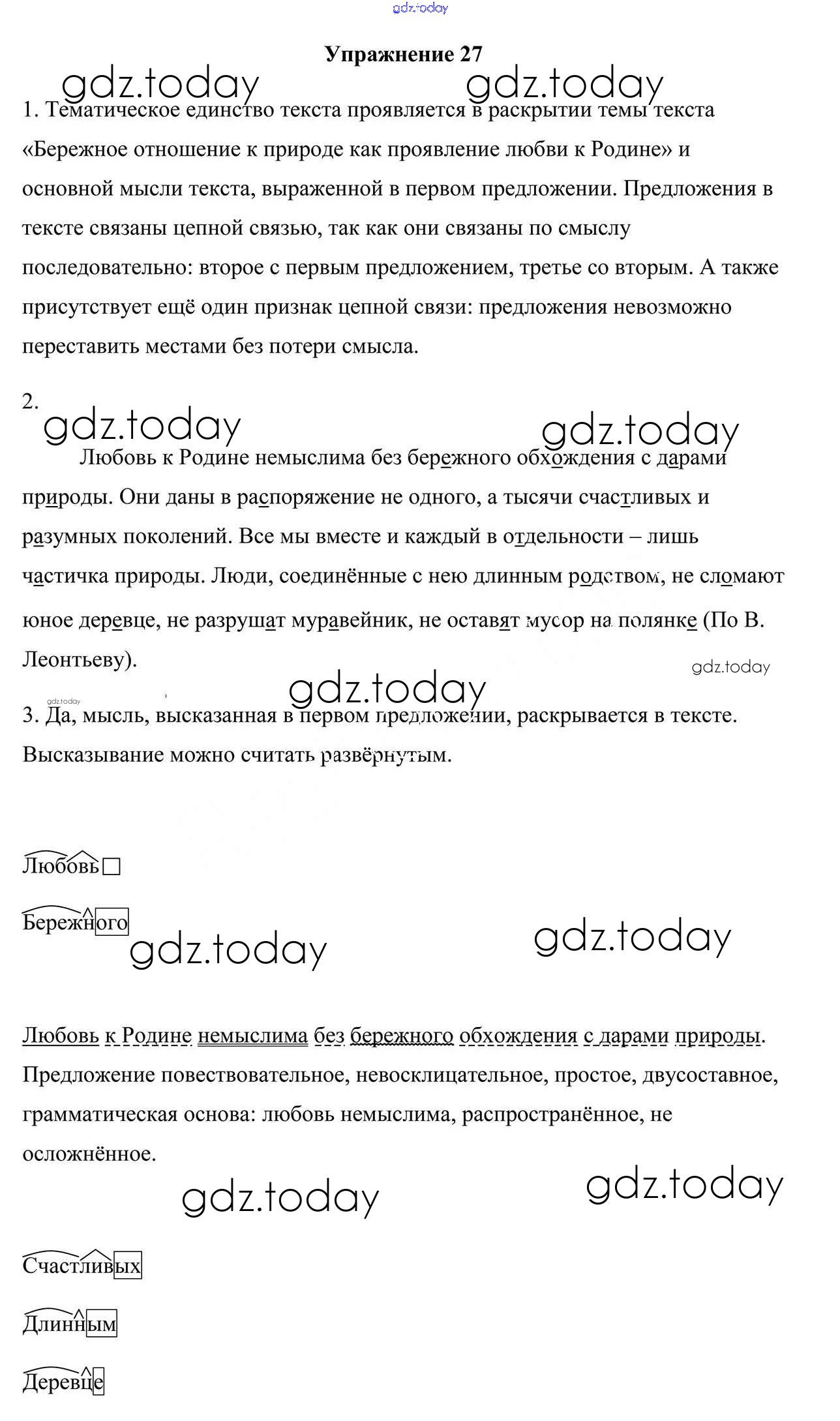 На страницах сайта gdz.today вы найдете учебный и вспомогательный материал, направленный на улучшения знаний школьной программы. ГДЗ - онлайн мир знаний Решение к упражнениям 27 Учебнику по Русскому языку для 6 класса Мурина, Литвинко Национальный институт образования 2020