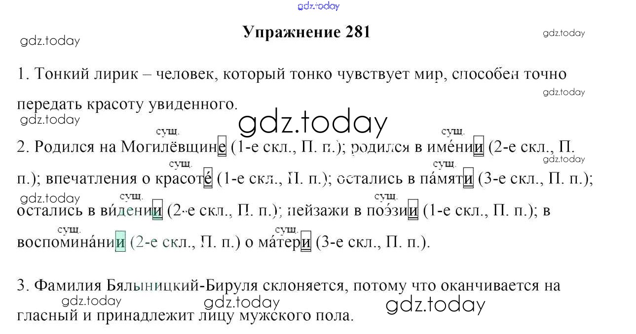 На страницах сайта gdz.today вы найдете учебный и вспомогательный материал, направленный на улучшения знаний школьной программы. ГДЗ - онлайн мир знаний Решение к упражнениям 281 Учебнику по Русскому языку для 6 класса Мурина, Литвинко Национальный институт образования 2020