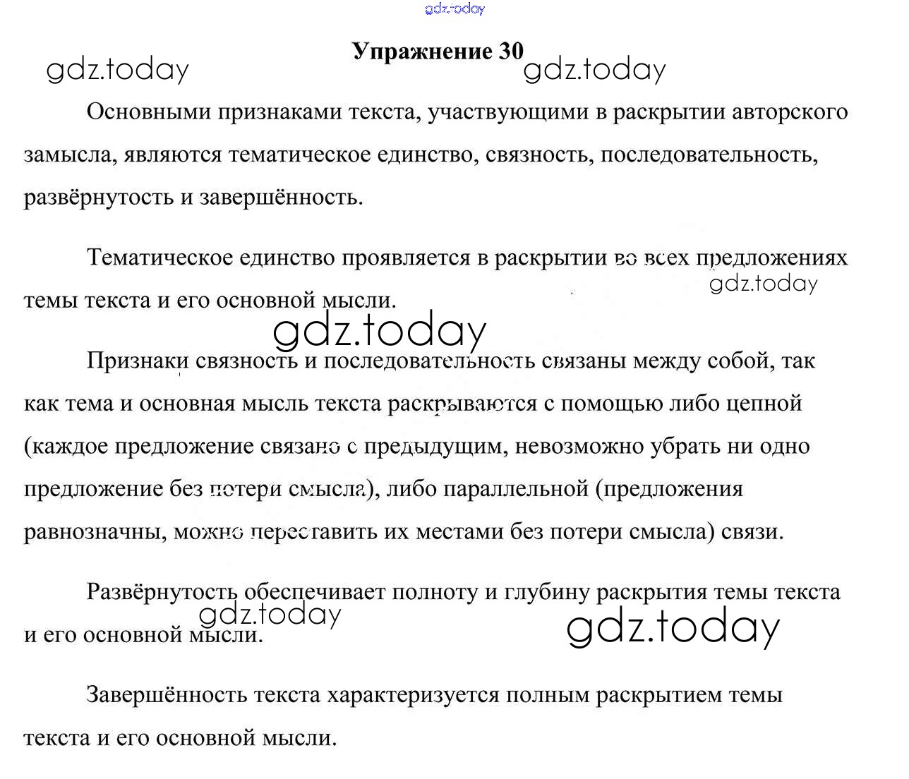 На страницах сайта gdz.today вы найдете учебный и вспомогательный материал, направленный на улучшения знаний школьной программы. ГДЗ - онлайн мир знаний Решение к упражнениям 30 Учебнику по Русскому языку для 6 класса Мурина, Литвинко Национальный институт образования 2020