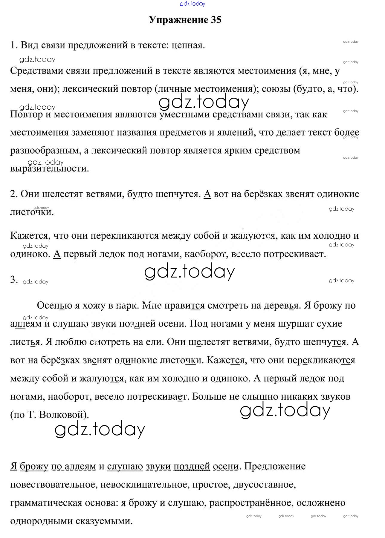 Ответы к Решение к упражнениям 35 Учебнику по Русскому языку для 6 класса Мурина, Литвинко Национальный институт образования 2020