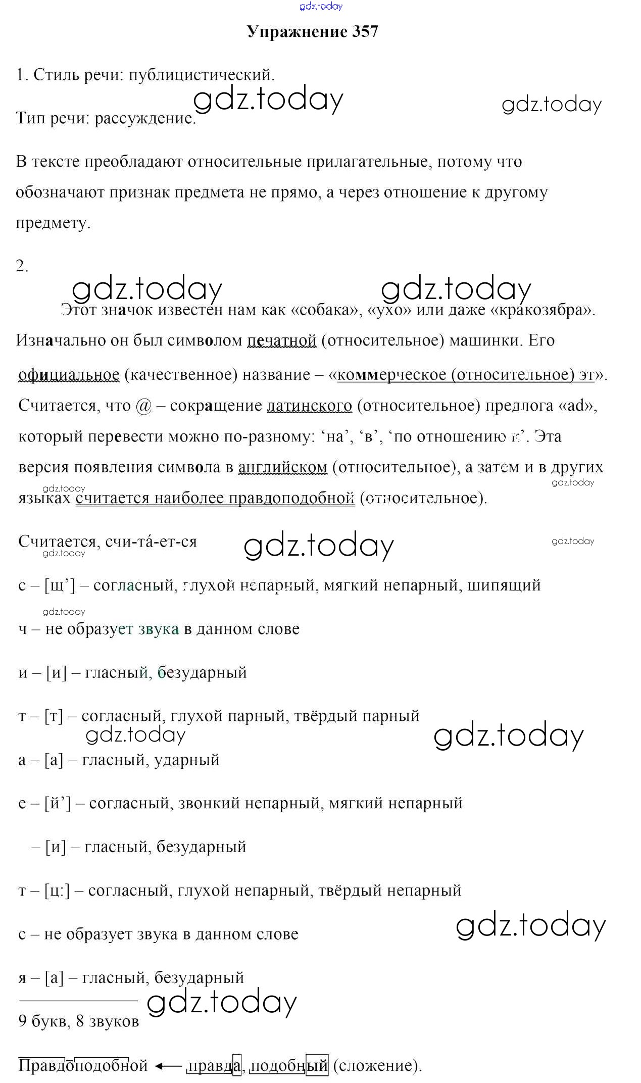 На страницах сайта gdz.today вы найдете учебный и вспомогательный материал, направленный на улучшения знаний школьной программы. ГДЗ - онлайн мир знаний Решение к упражнениям 357 Учебнику по Русскому языку для 6 класса Мурина, Литвинко Национальный институт образования 2020