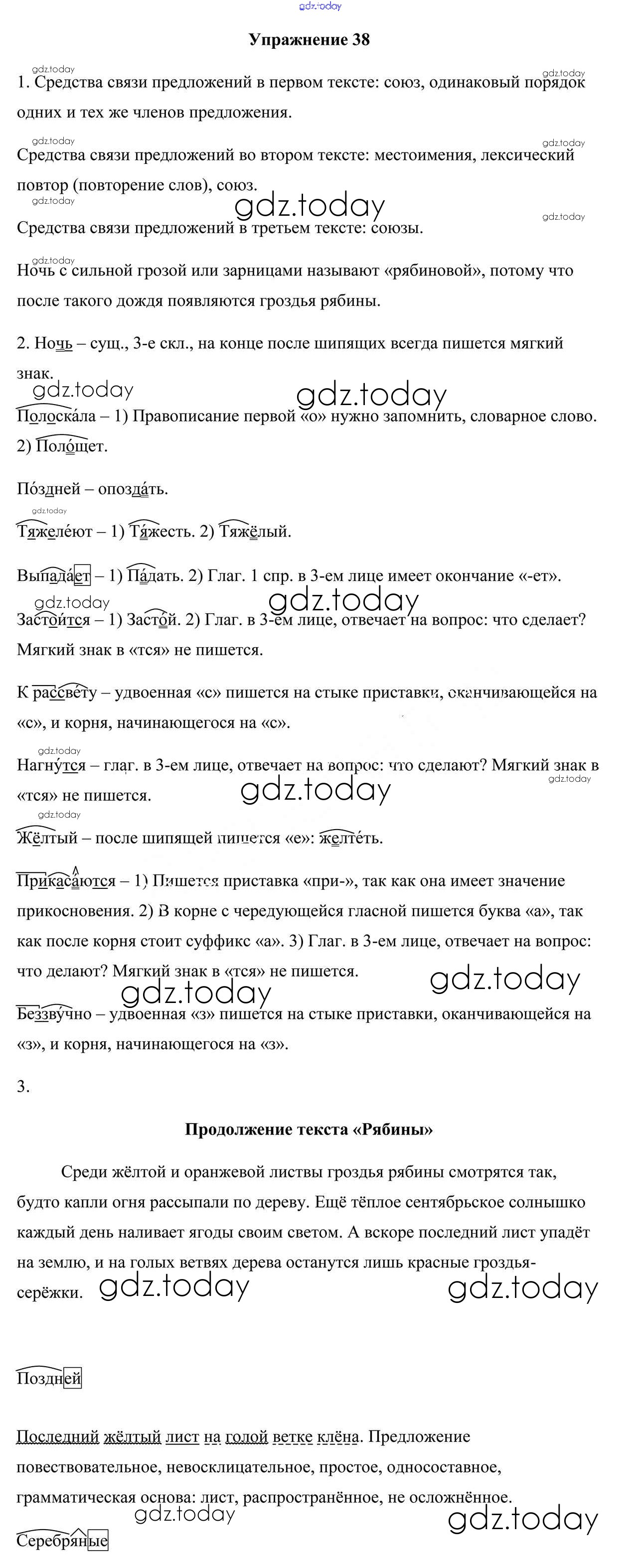 На страницах сайта gdz.today вы найдете учебный и вспомогательный материал, направленный на улучшения знаний школьной программы. ГДЗ - онлайн мир знаний Решение к упражнениям 38 Учебнику по Русскому языку для 6 класса Мурина, Литвинко Национальный институт образования 2020
