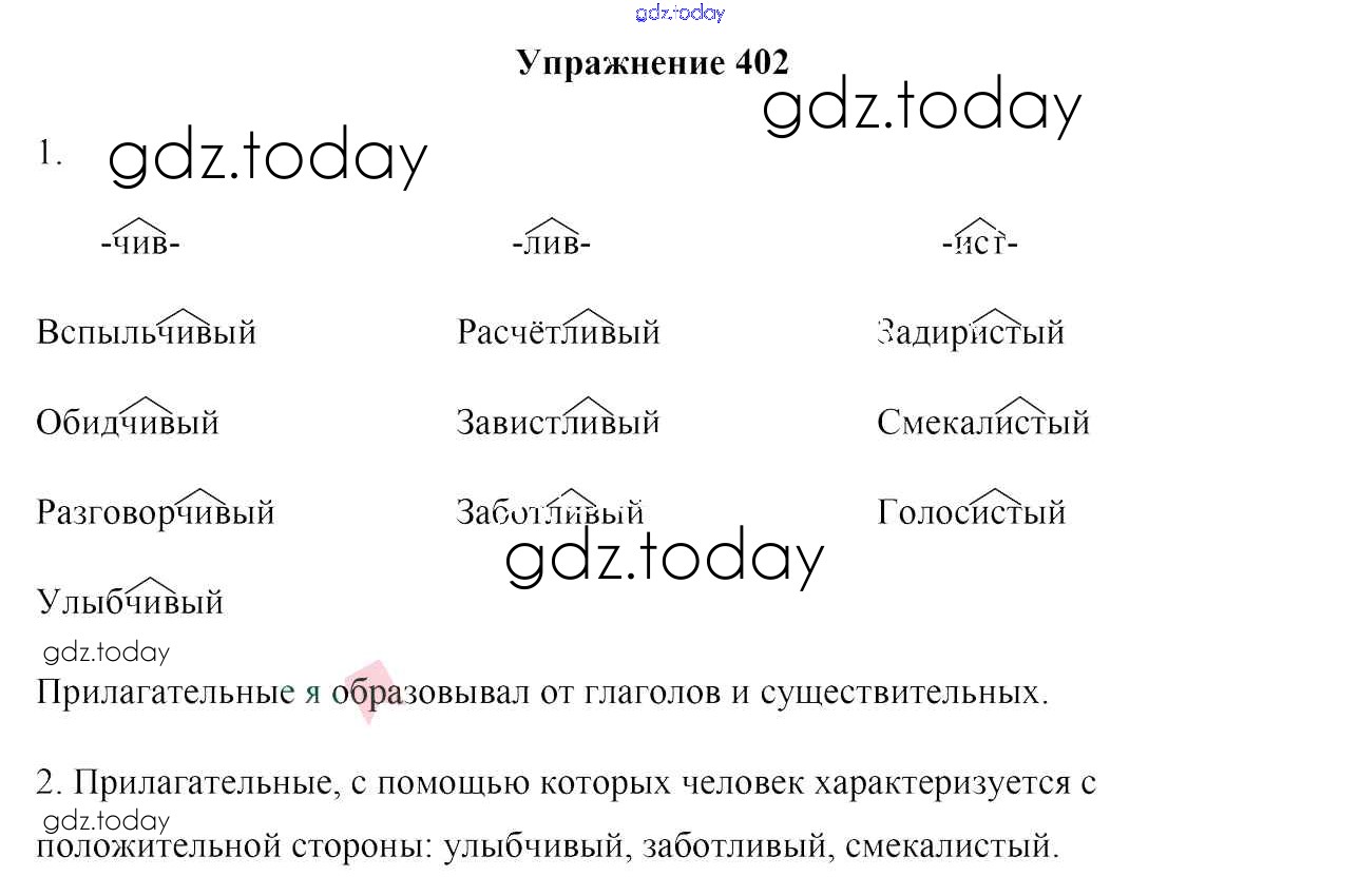 На страницах сайта gdz.today вы найдете учебный и вспомогательный материал, направленный на улучшения знаний школьной программы. ГДЗ - онлайн мир знаний Решение к упражнениям 402 Учебнику по Русскому языку для 6 класса Мурина, Литвинко Национальный институт образования 2020