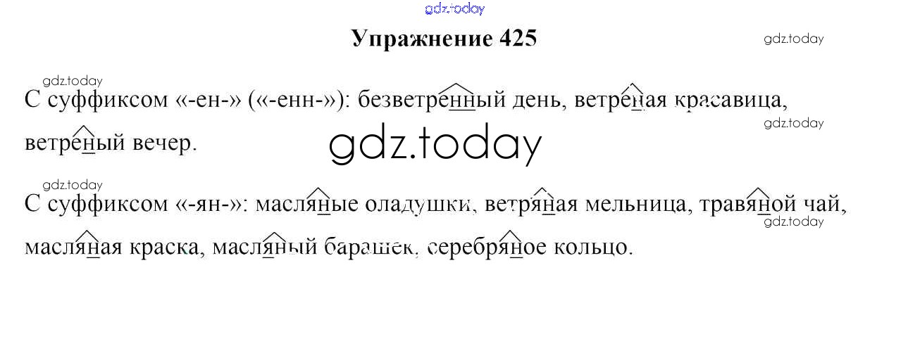 На страницах сайта gdz.today вы найдете учебный и вспомогательный материал, направленный на улучшения знаний школьной программы. ГДЗ - онлайн мир знаний Решение к упражнениям 425 Учебнику по Русскому языку для 6 класса Мурина, Литвинко Национальный институт образования 2020