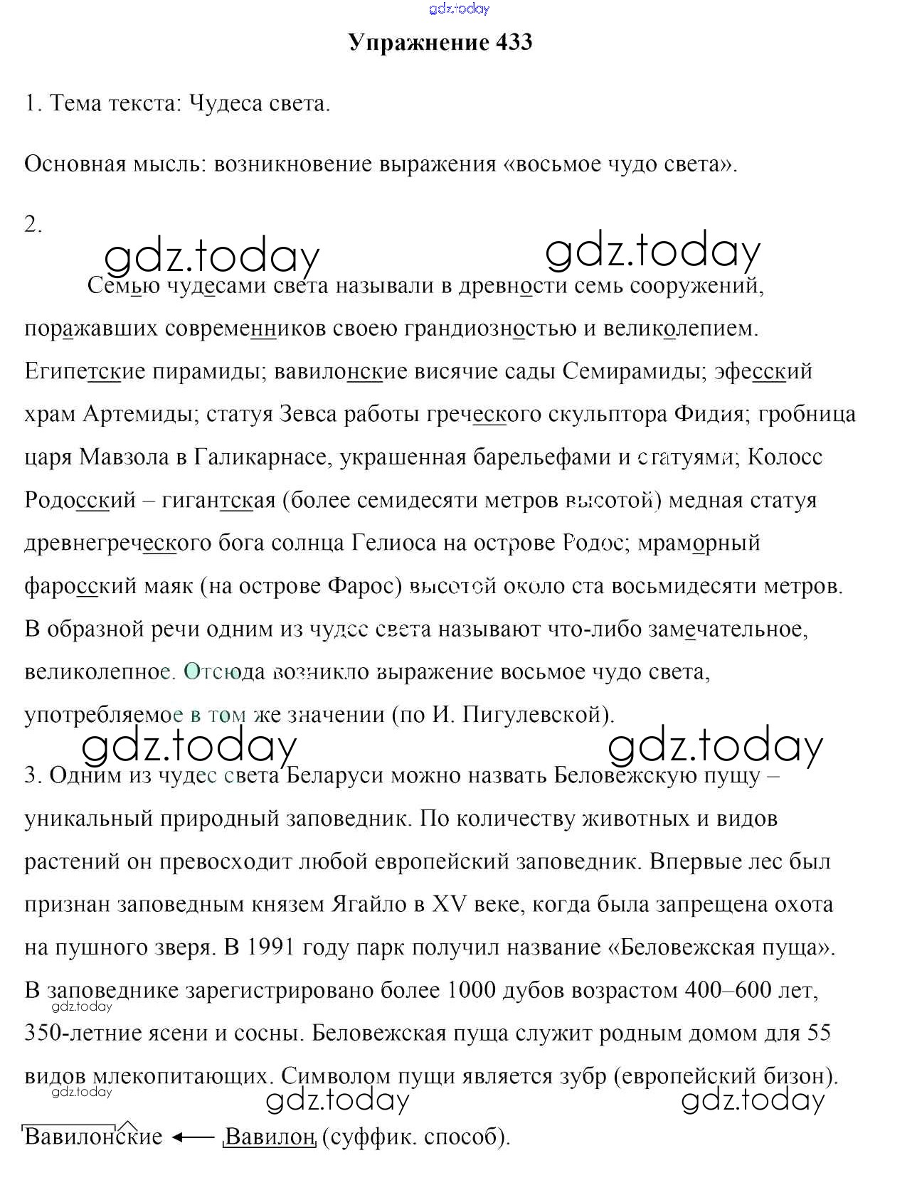 На страницах сайта gdz.today вы найдете учебный и вспомогательный материал, направленный на улучшения знаний школьной программы. ГДЗ - онлайн мир знаний Решение к упражнениям 433 Учебнику по Русскому языку для 6 класса Мурина, Литвинко Национальный институт образования 2020