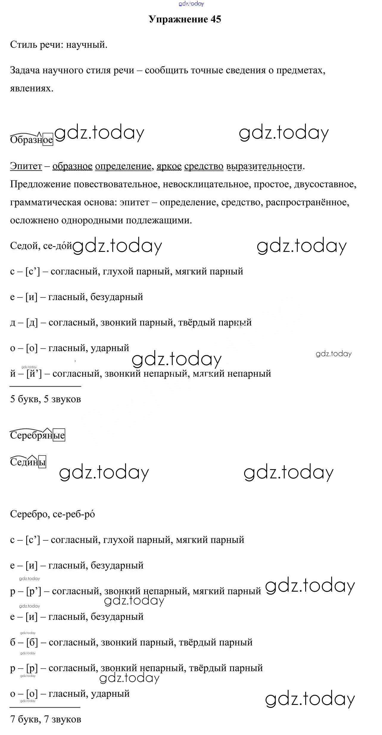 На страницах сайта gdz.today вы найдете учебный и вспомогательный материал, направленный на улучшения знаний школьной программы. ГДЗ - онлайн мир знаний Решение к упражнениям 45 Учебнику по Русскому языку для 6 класса Мурина, Литвинко Национальный институт образования 2020