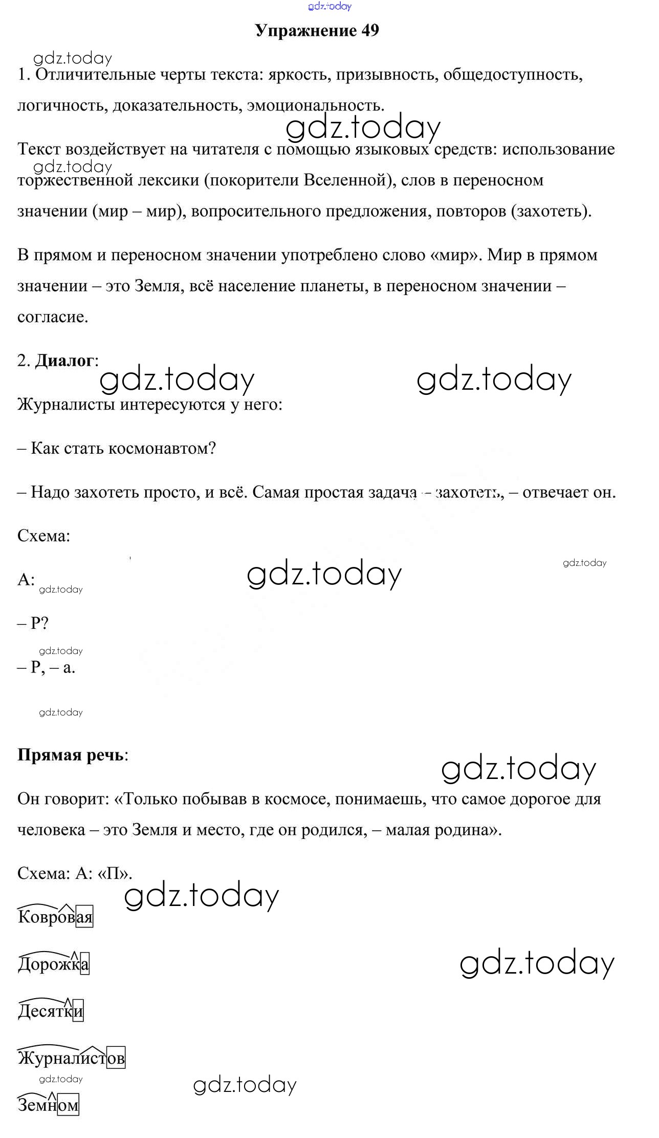 Ответы к Решение к упражнениям 49 Учебнику по Русскому языку для 6 класса Мурина, Литвинко Национальный институт образования 2020