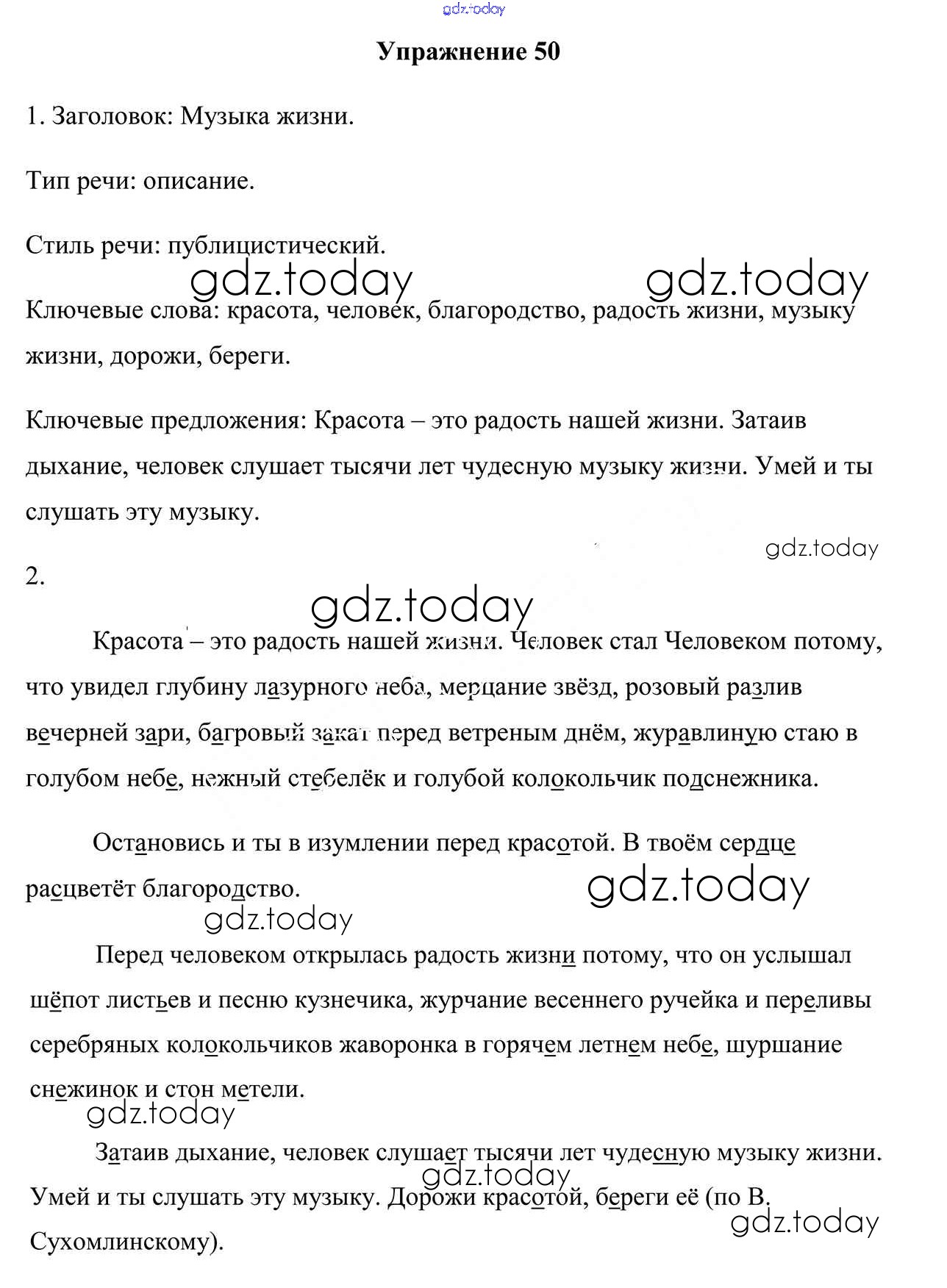 На страницах сайта gdz.today вы найдете учебный и вспомогательный материал, направленный на улучшения знаний школьной программы. ГДЗ - онлайн мир знаний Решение к упражнениям 50 Учебнику по Русскому языку для 6 класса Мурина, Литвинко Национальный институт образования 2020