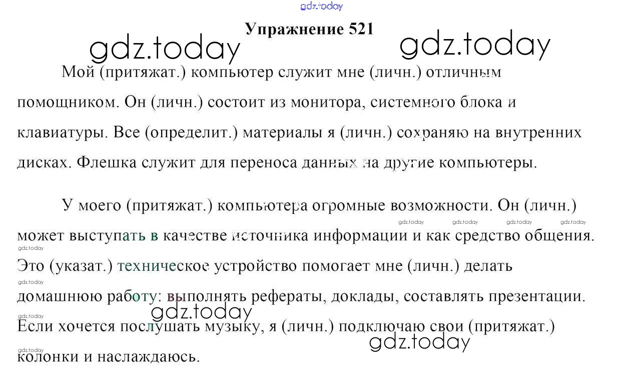 На страницах сайта gdz.today вы найдете учебный и вспомогательный материал, направленный на улучшения знаний школьной программы. ГДЗ - онлайн мир знаний Решение к упражнениям 521 Учебнику по Русскому языку для 6 класса Мурина, Литвинко Национальный институт образования 2020