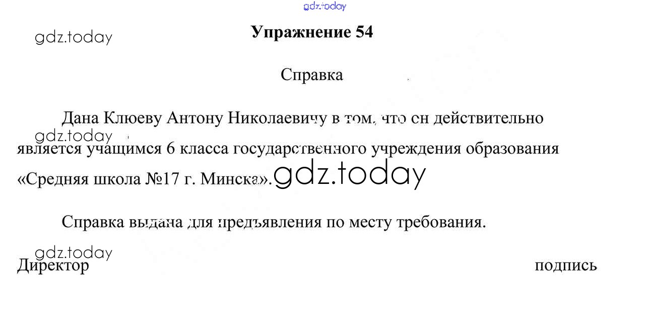 На страницах сайта gdz.today вы найдете учебный и вспомогательный материал, направленный на улучшения знаний школьной программы. ГДЗ - онлайн мир знаний Решение к упражнениям 54 Учебнику по Русскому языку для 6 класса Мурина, Литвинко Национальный институт образования 2020