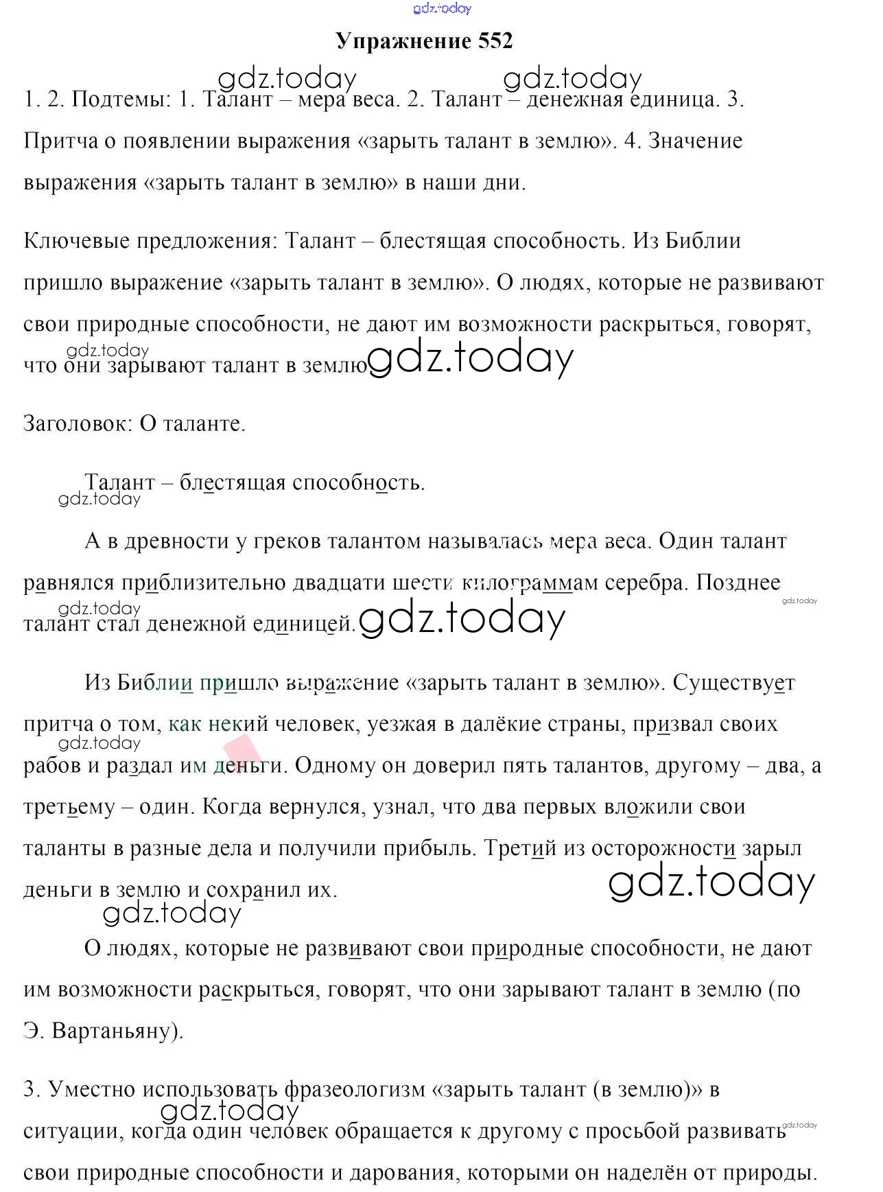 Ответы к Решение к упражнениям 552 Учебнику по Русскому языку для 6 класса Мурина, Литвинко Национальный институт образования 2020