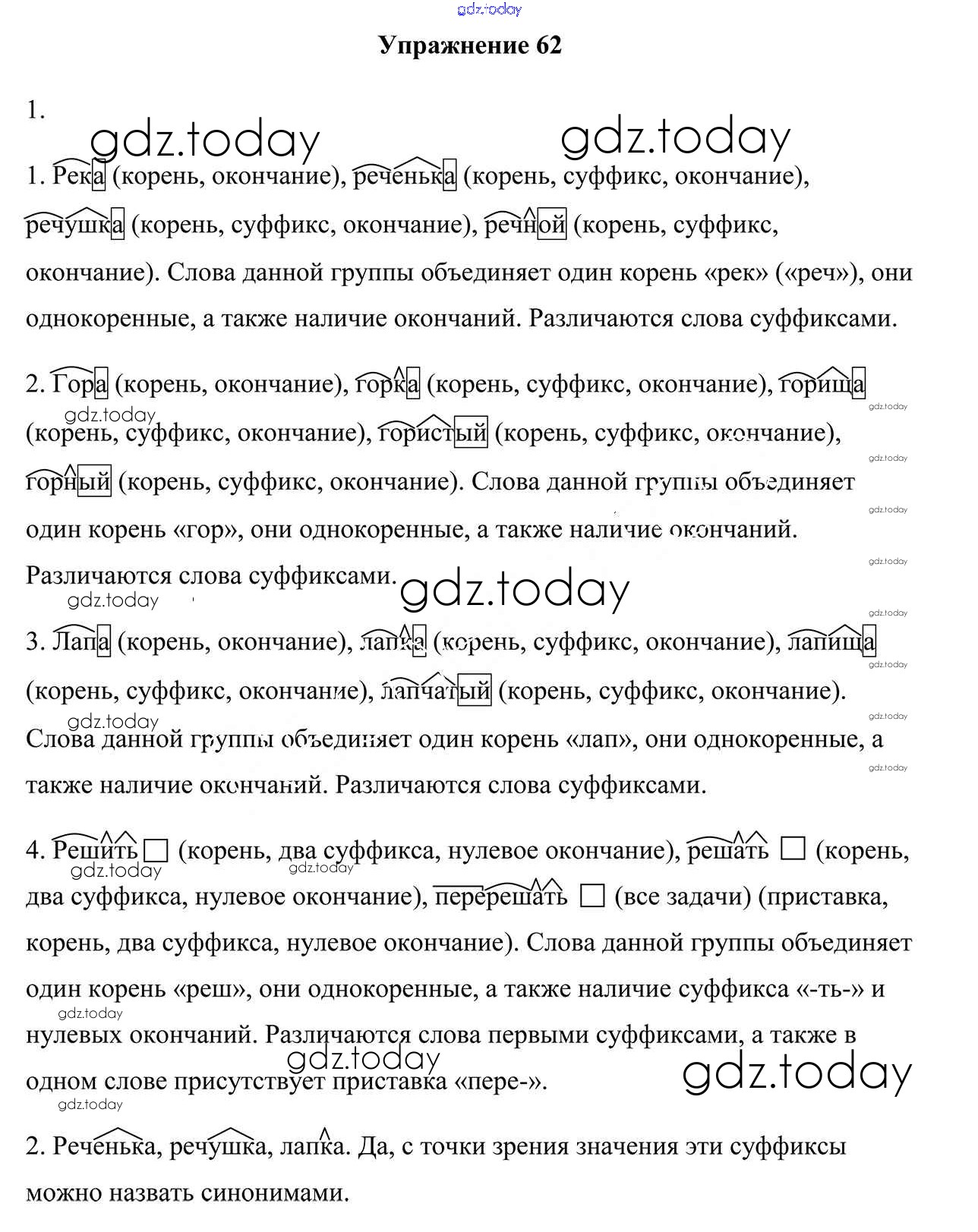 Ответы к Решение к упражнениям 62 Учебнику по Русскому языку для 6 класса Мурина, Литвинко Национальный институт образования 2020